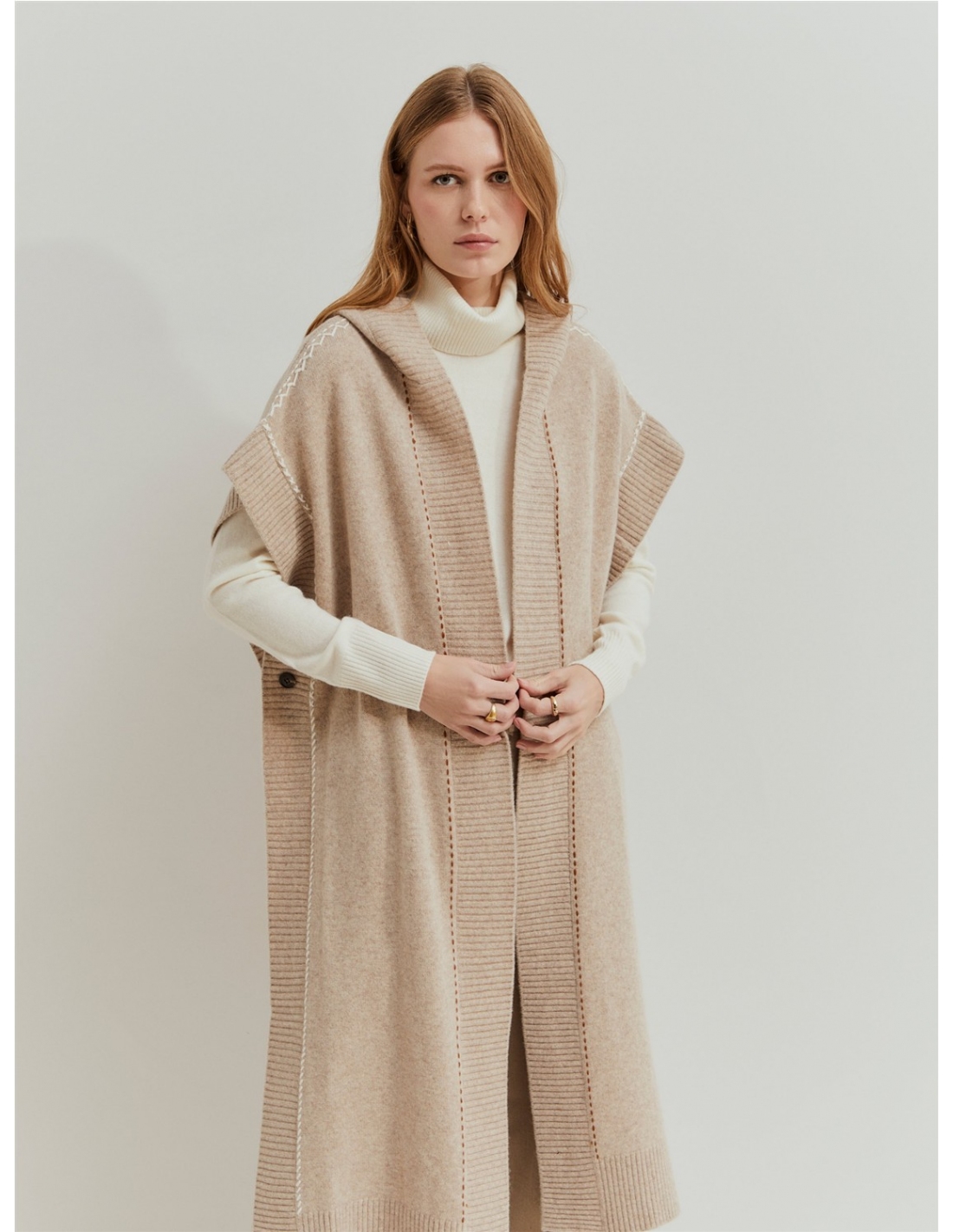 Con un diseño elegante y minimalista, este jersey largo está confeccionado íntegramente en lana, lo que garantiza comodidad y un tacto suave. De manga corta, es la prenda perfecta para llevar sobre camisas o blusas, añadiendo estilo y calidez a cualquier look.
