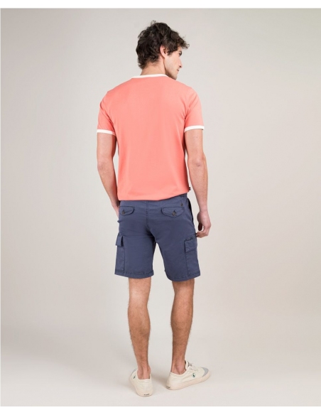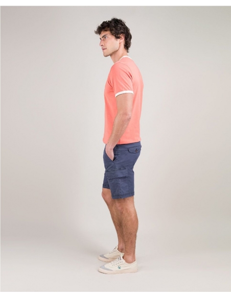 Bermuda hombre liso confeccionado en algodón. Corte regular fit con cierre elástico. Lleva cordones en la cintura. Bolsillos cargo. Detalles en bolsillo. Aporta un carácter informal y relajado, junto a una gran comodidad.