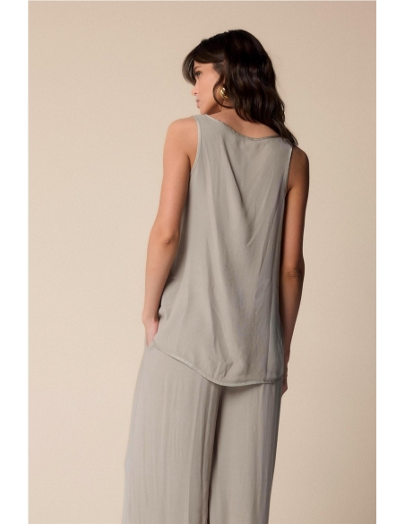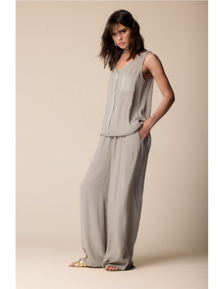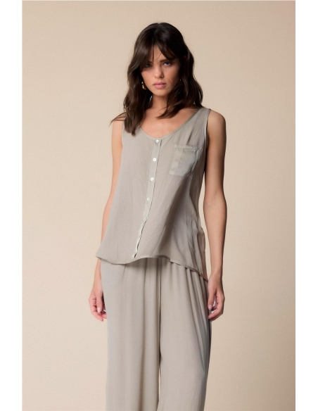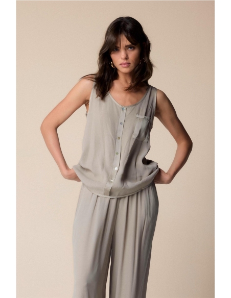 Estilo esencial para esta camiseta de tirantes abotonada, un auténtico imprescindible para tu armario de verano. La prenda presenta un corte fluido, bolsillo frontal y ajuste cómodo. Composición 100% VISCOSA