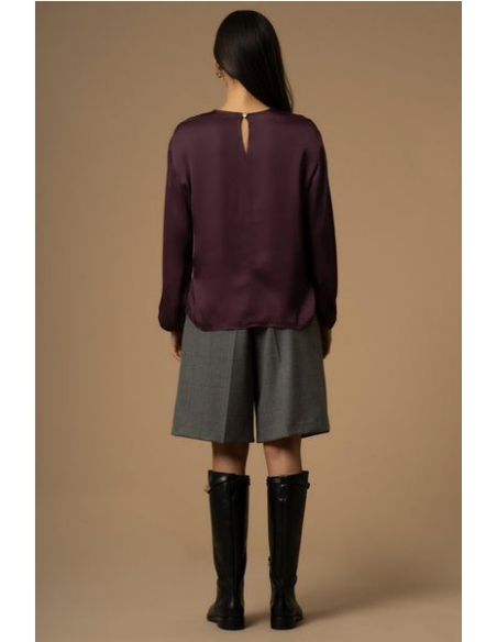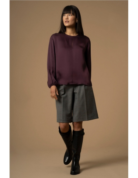El estilo sobrio de esta blusa de viscosa pura se realza con un agradable corte en la parte delantera. Presenta mangas largas y anchas, cuello redondo y corte regular.