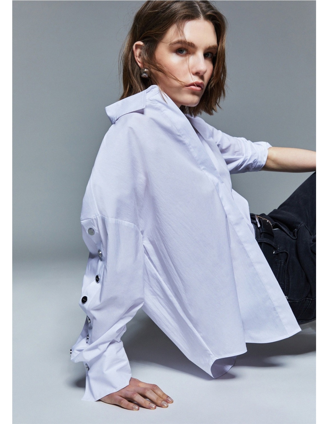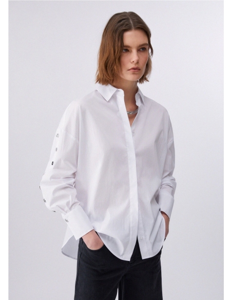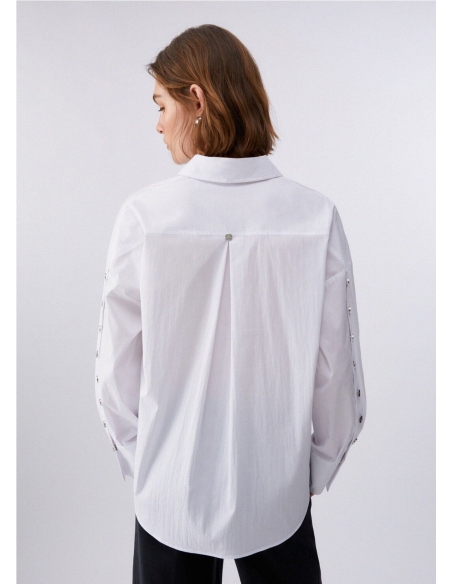 Blusa de mujer de LIU JO Ajuste regular cuello de camisa Tapeta de botones oculta Mangas largas con detalles de botones. Dobladillo redondeado en la espalda