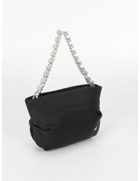 Bolso de satén con cadena de strass