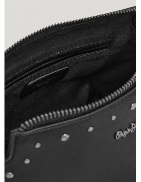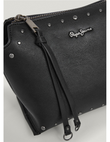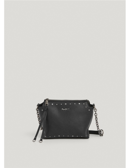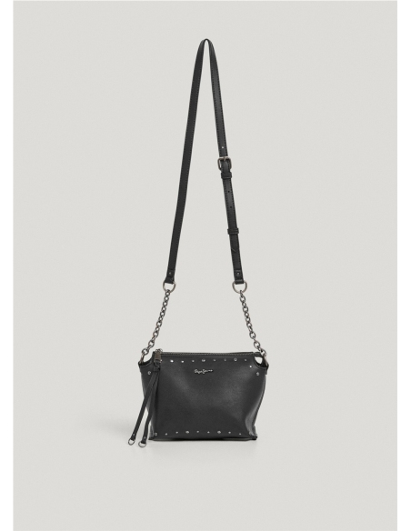 - Bolso bandolera acolchado de piel sintética - Compartimento único con cierre de cremallera - Asa ajustable del mismo material con cadena metálica - Tachuelas redondas decorativas en la parte delantera - Placa metálica con el logo de PEPE JEANS en la parte delantera - Bolsillo interior de ribete - Forro interior - Dimensiones: 11 x 26 x 15 cm