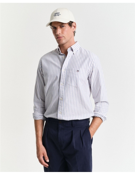 Versátil, básica y perfecta para un look elegante e informal, esta camisa Oxford clásica tiene un corte regular y presenta rayas teñidas en hilo. Confeccionada en algodón, esta camisa utiliza un suave tejido Oxford procedente de nuestro archivo de camisería. Presenta cuello abotonado, puños ajustables y un pliegue cuadrado con nuestra distintiva trabilla en la espalda. Luce un sutil gráfico del escudo de GANT bordado en el bolsillo del pecho.