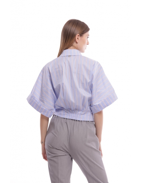 CAMISA CORTA DE ALGODÓN A RAYAS