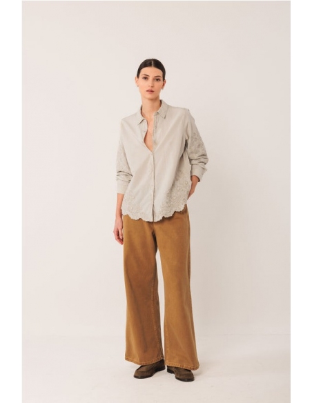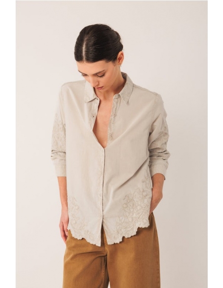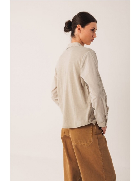 Camisa combinada de jersey slub con voile bordado de motivo floral, una mezcla perfecta de lo casual y lo sofisticado. Fit relajado y comfy. FIT RELAJADO