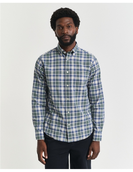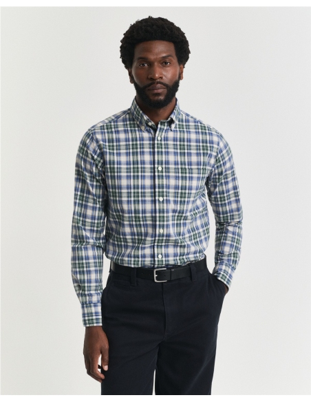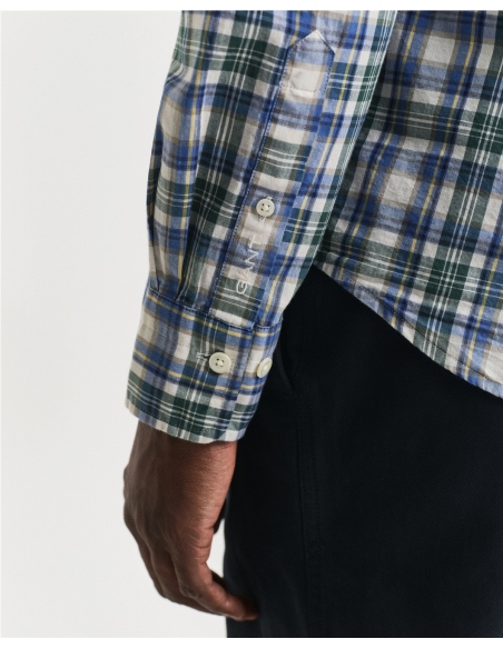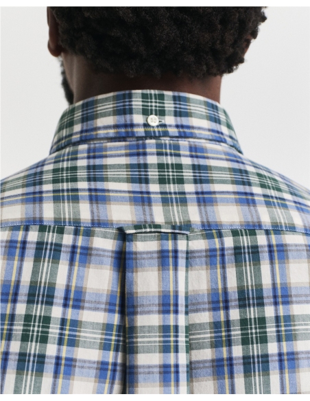 Confeccionada en algodón, esta camisa tiene un corte regular y luce un estampado de cuadros teñidos en hilo. Diseñada en popelina de algodón, presenta un cuello clásico abotonado, puños ajustables y bajo redondeado. Adornada con botones de poliéster reciclado, el diseño también está adornado con el logotipo de GANT bordado en la tapeta de la manga y un pliegue cuadrado con nuestra distintiva trabilla en la espalda.