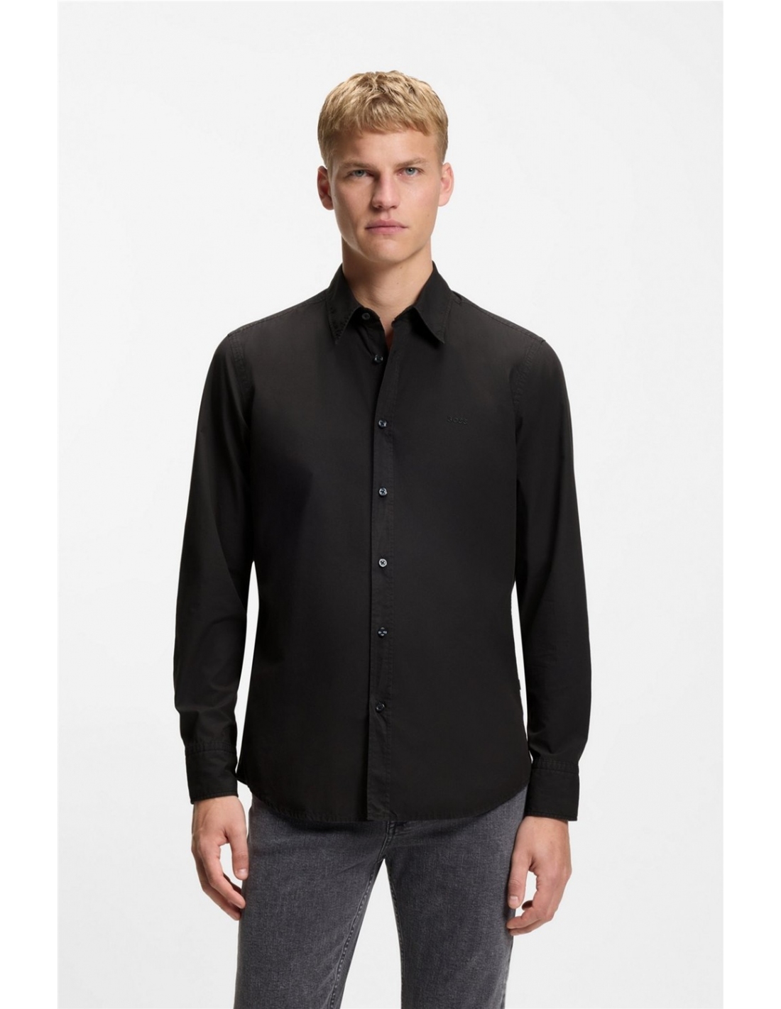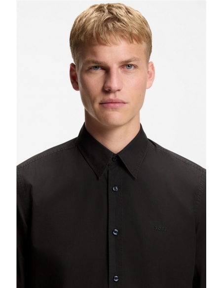 Esta camisa BOSS Hombre straight fit con detalles de la marca bordados se adapta tanto a estilismos casuales como formales. Confeccionada a mano en popelín de algodón suave. Regular fit Cuello 'Kent' Puños rectos