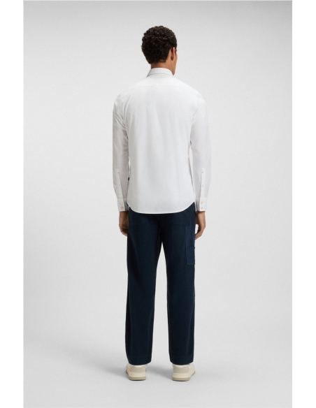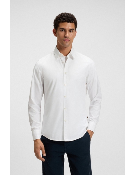 Esta camisa BOSS Hombre straight fit con detalles de la marca bordados se adapta tanto a estilismos casuales como formales. Confeccionada a mano en popelín de algodón suave. Regular fit Cuello 'Kent' Puños rectos