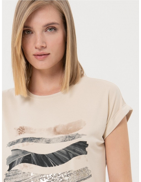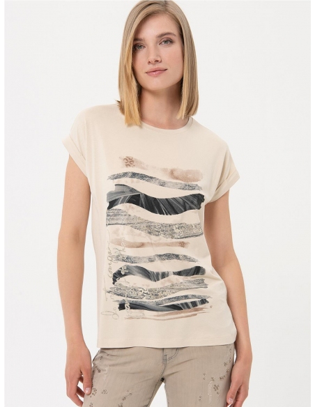 Camiseta regular fit confeccionada en punto. Cuello redondo, obra de arte conceptual y manga corta. COMPOSICIÓN: VISCOSA 95% ELASTANO 5%