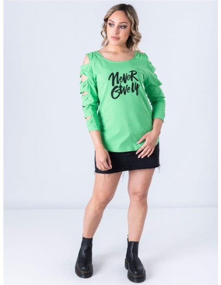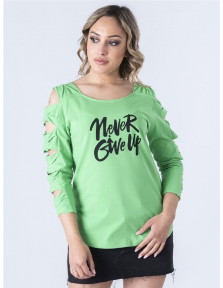 La manga la forman lazos que tienen 3 pequeñas tachuelas en centro. La relación entre música y moda siempre ha sido bastante estrecha. La misma que hay entre actitud y glamour. Esta camiseta tiene una mezcla de ambos. Diseñada en España y producida en Portugal poniendo mucho cariño en los detalles.