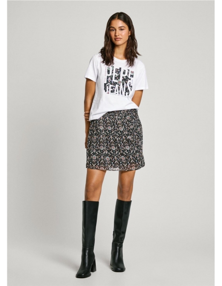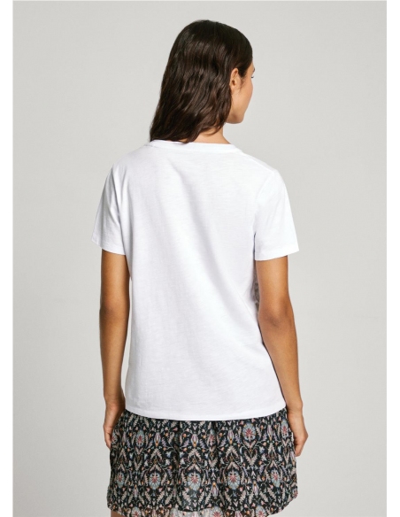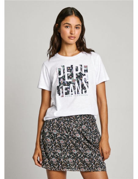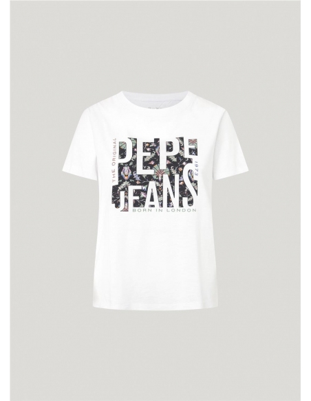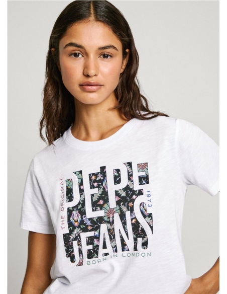 El algodón sostenible minimiza el uso de sustancias químicas nocivas, mejora la calidad del suelo y previene la contaminación para ayudar a proteger la salud de los agricultores y la fauna local. - Camiseta en tejido jersey de algodón - Fit regular - Cuello redondo - Manga corta - Maxi logo PEPEJEANS estampado en frontal - Detalle canalé en cuello - Acabado doble pespunte en bajo y mangas - Fabricada 100% en algodón sostenible