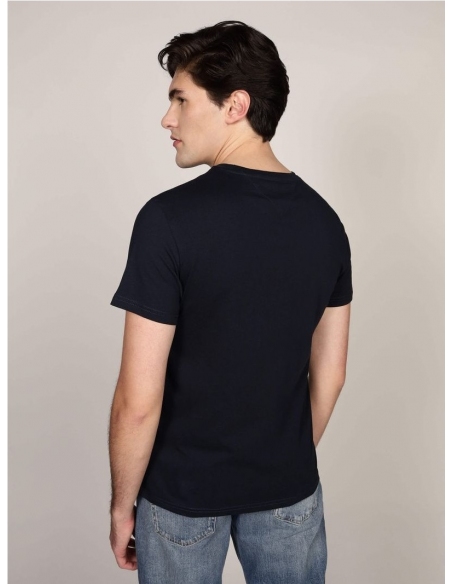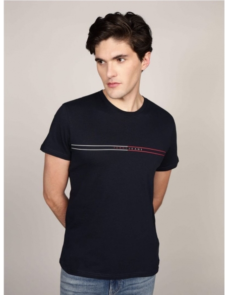 Esta refinada camiseta, diseñada con un estilo minimalista y un corte extra slim, es una prenda tan sobria como elegante. Características • Mezcla de algodón jaspeado • Cuello redondo • Cuello de punto elástico • Detalles distintivos de Tommy Jeans • Parche con el logo de Tommy Jeans en el pecho Talla y corte • Corte extra slim