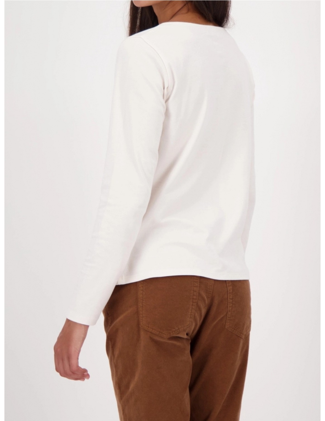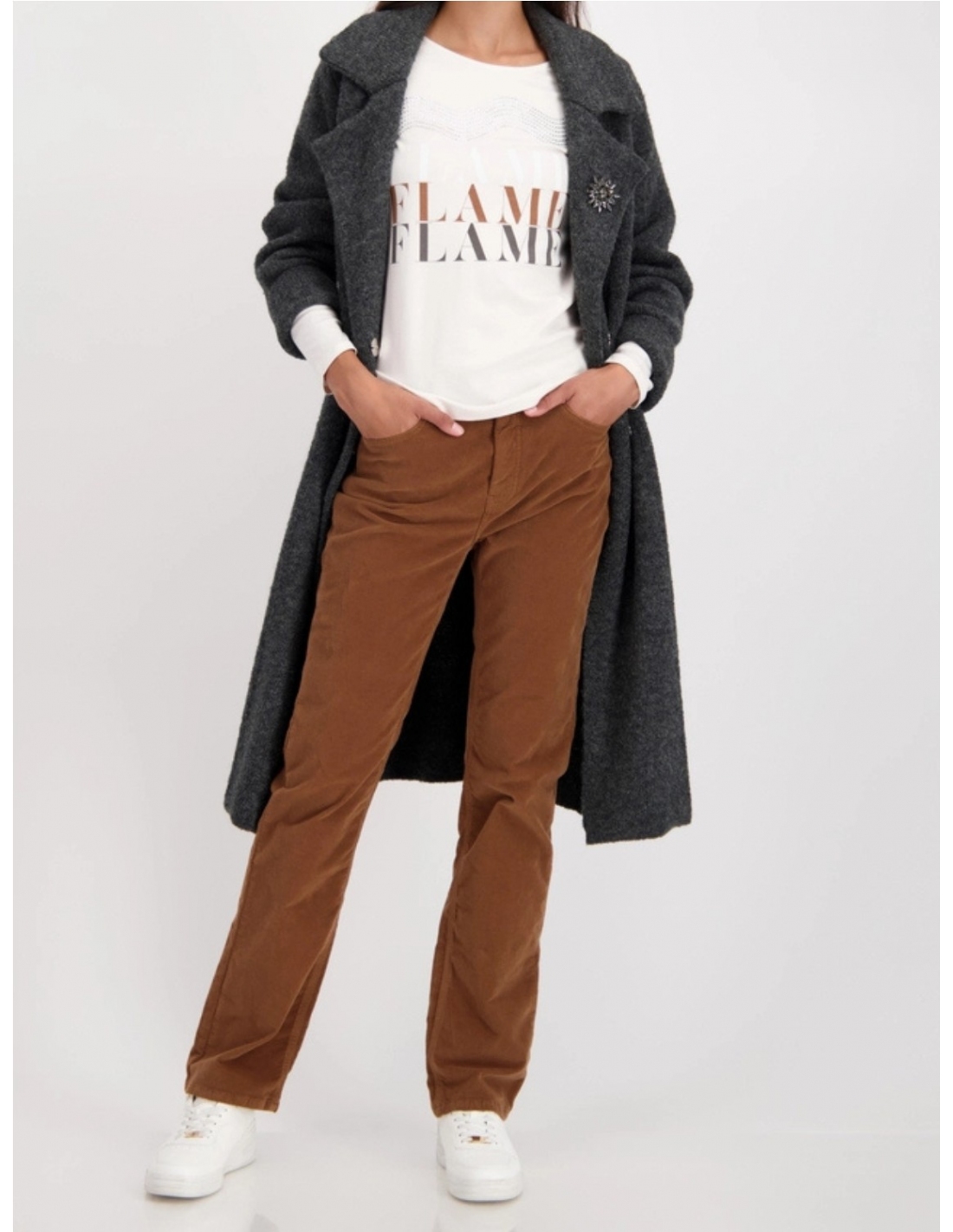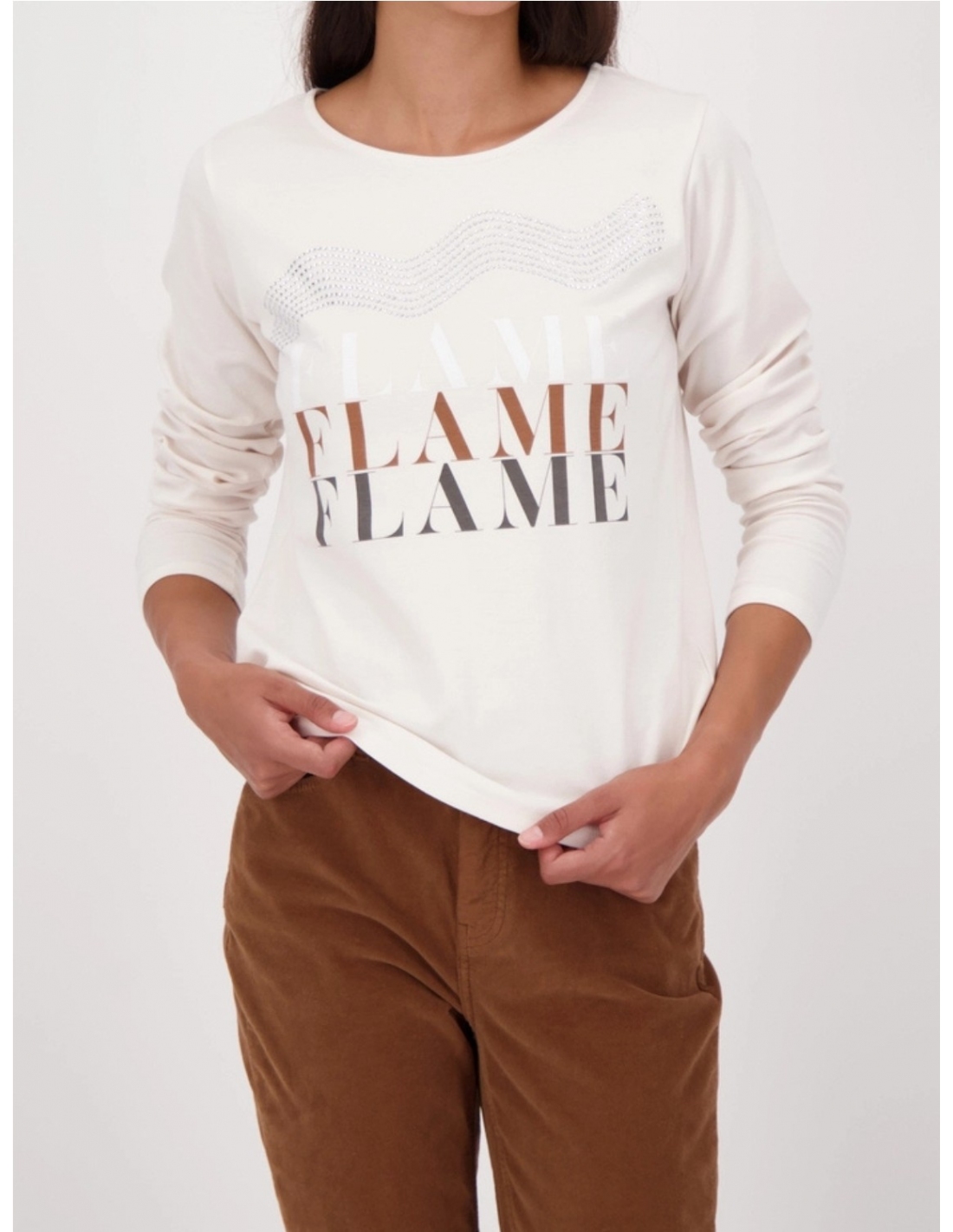 Elegante camiseta de manga larga confeccionada en 100% algodón con inscripción "Be the Flame" y pedrería brillante.