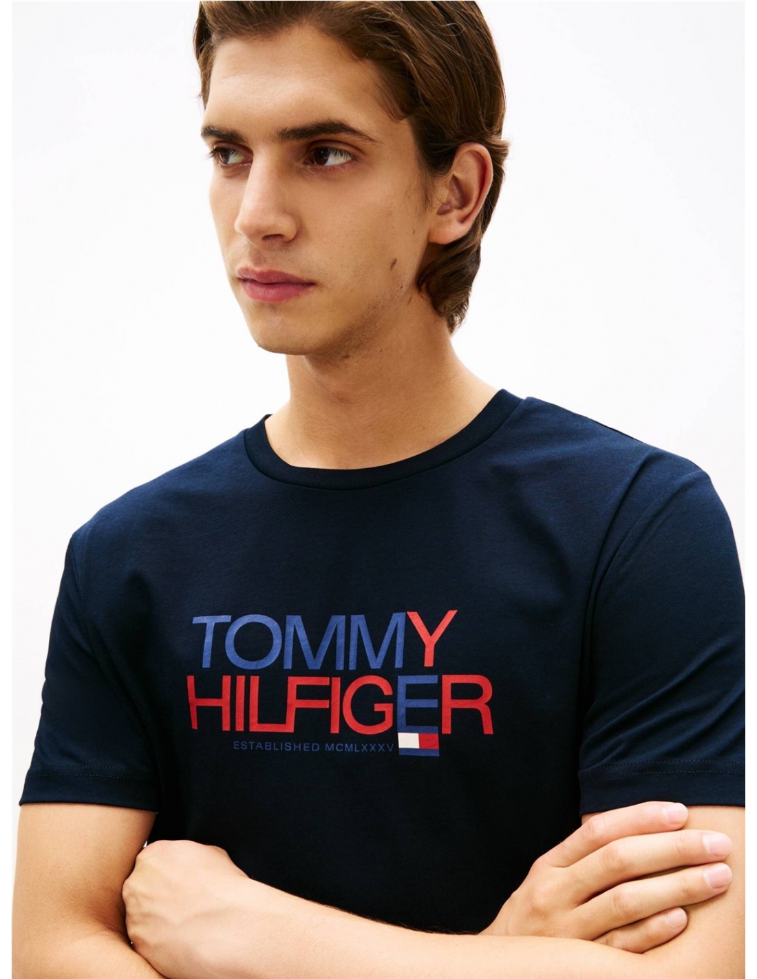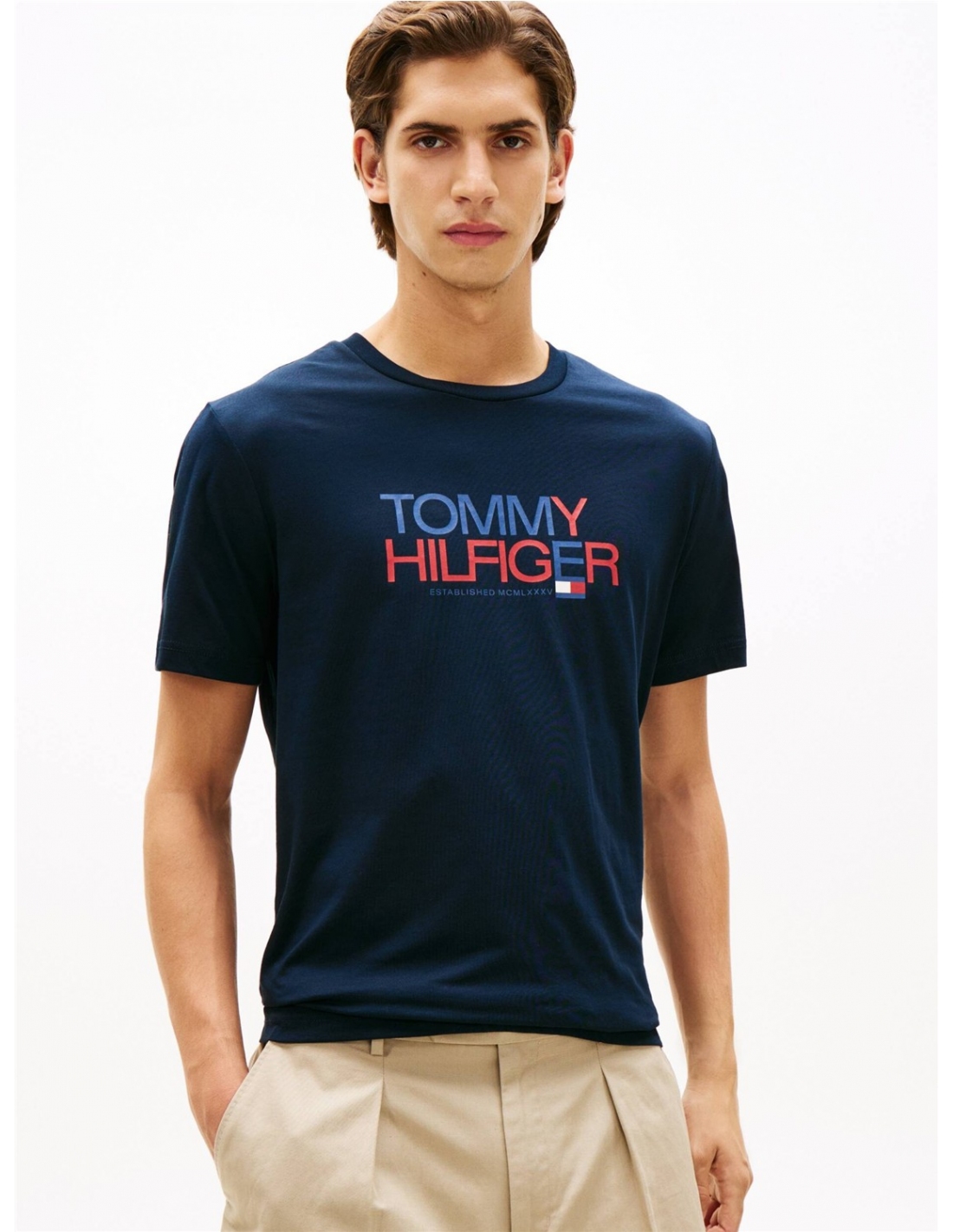 Esta camiseta de punto de algodón puro presenta un colorido logotipo gráfico en el pecho, que celebra los orígenes de la marca. Características destacadas • Punto de algodón puro • Cuello redondo • Cinta distintiva en el interior del cuello • Logotipo de Tommy Hilfiger gráfico en el pecho • Marca Tommy Hilfiger