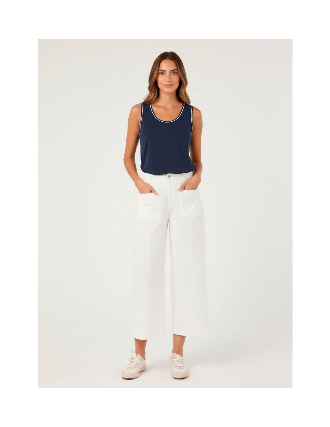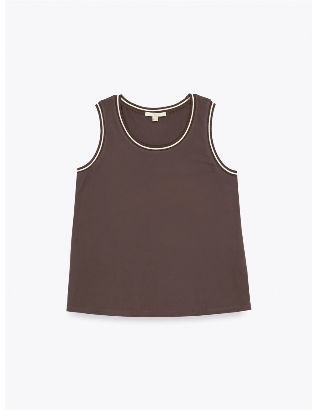 Camiseta de mujer de tirantes confeccionada en punto suave y ligero, con un diseño limpio y versátil. Presenta cuello redondo y sisas rematadas con ribetes contrastados que aportan un toque deportivo y actual. Su corte recto favorece la caída natural de la prenda, ideal para llevar sola o como base en looks en capas. Una pieza cómoda y funcional para el día a día.