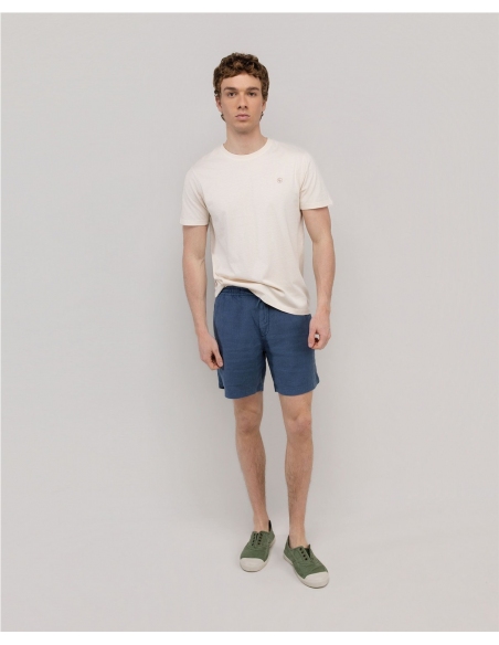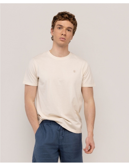 Camiseta de hombre de manga corta lisa de cuello redondo. Elaborada mediante un proceso sostenible y responsable con el medio ambiente. Corte regular fit con logo bordado en el pecho a contraste.