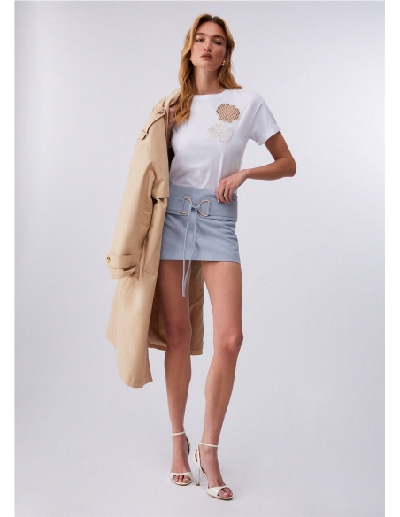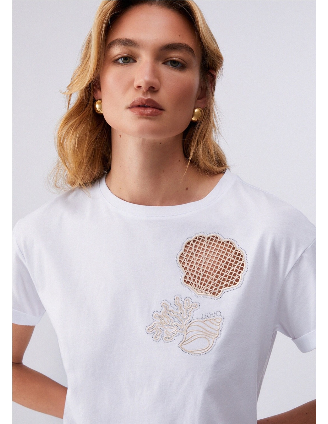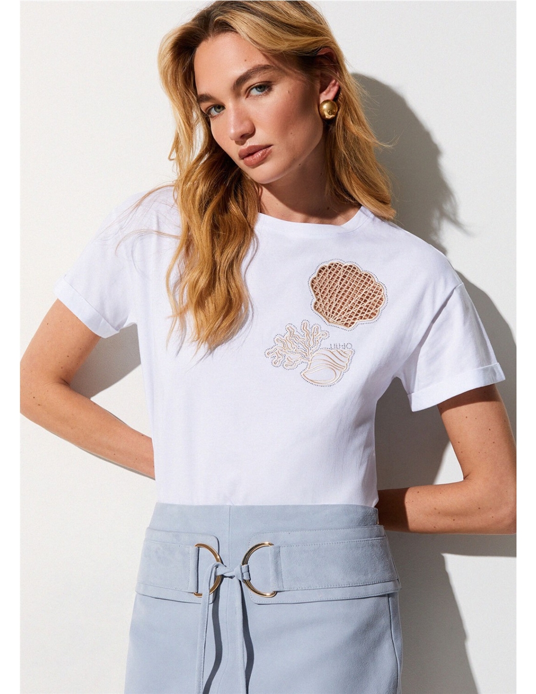 Camiseta de punto de algodón Cuello redondo Manga corta Bordado a jour Corte recto Producto "Liu Jo Better"