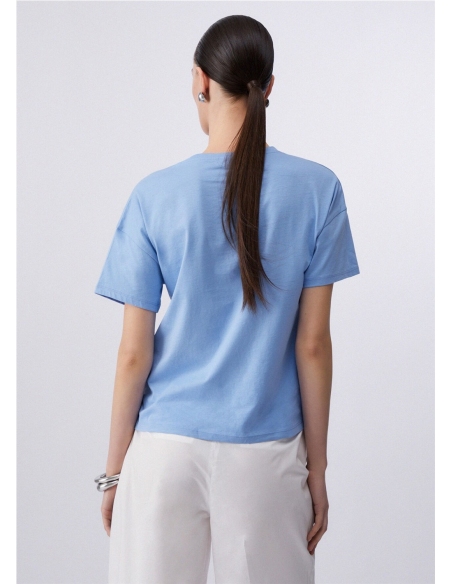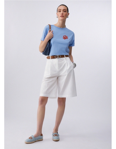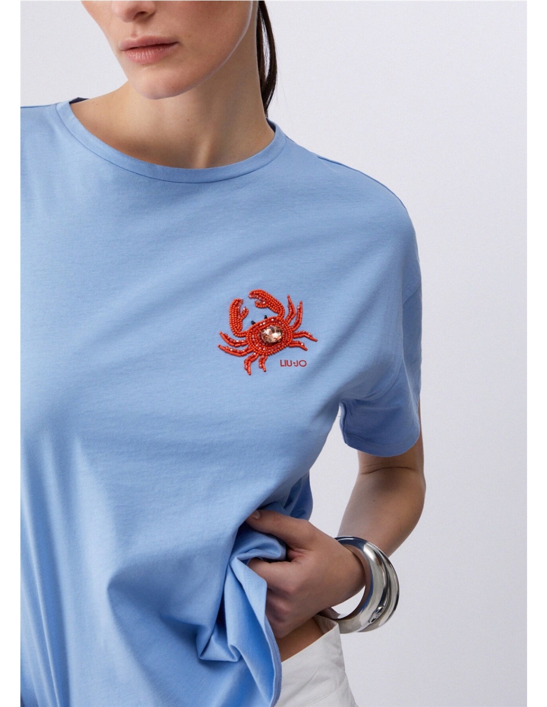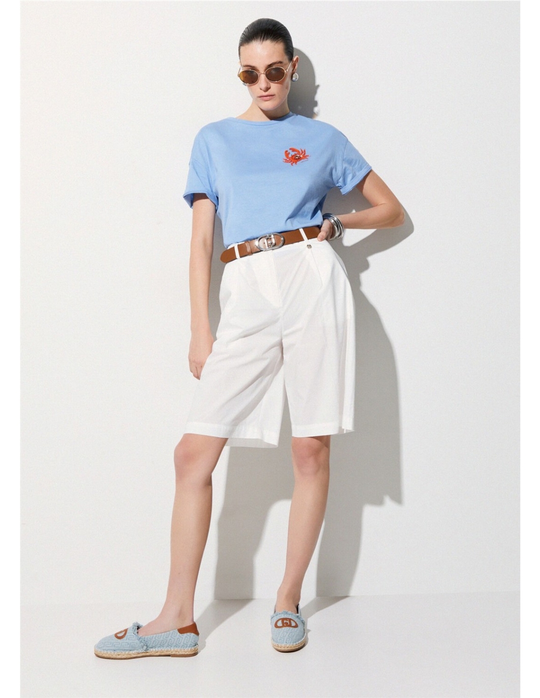 Camiseta de punto de algodón Cuello redondo Manga corta Parche bordado Corte recto Producto "Liu Jo Better"