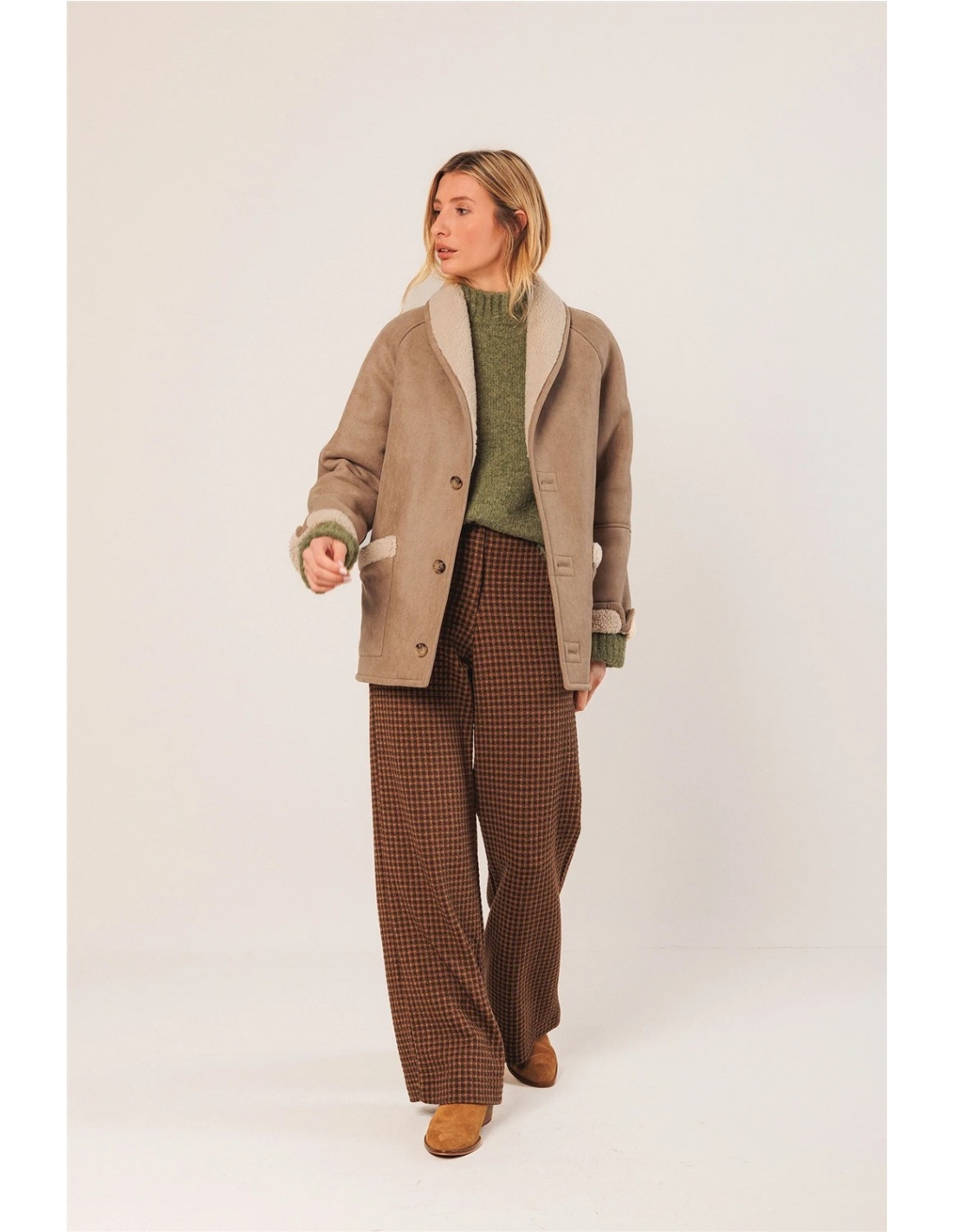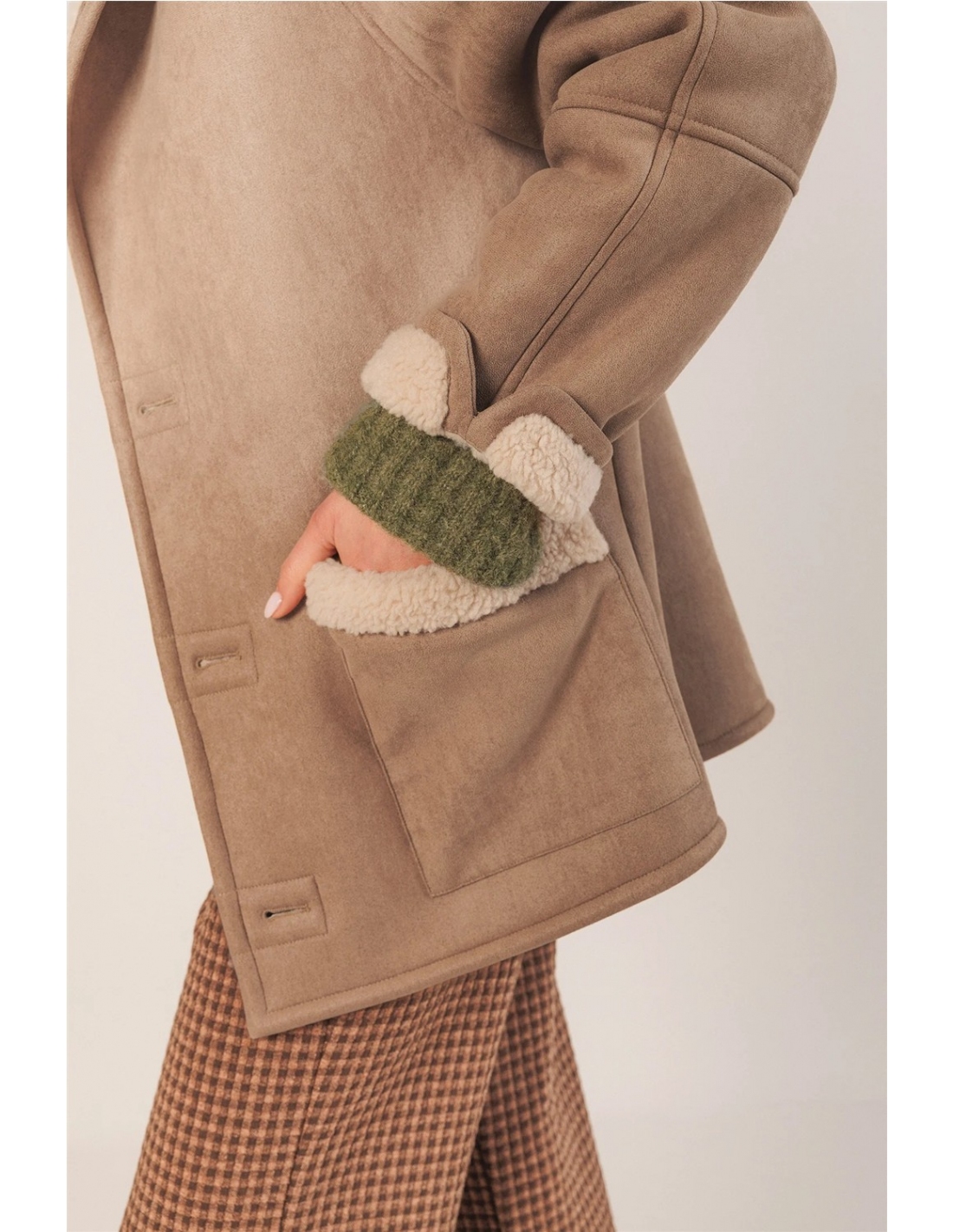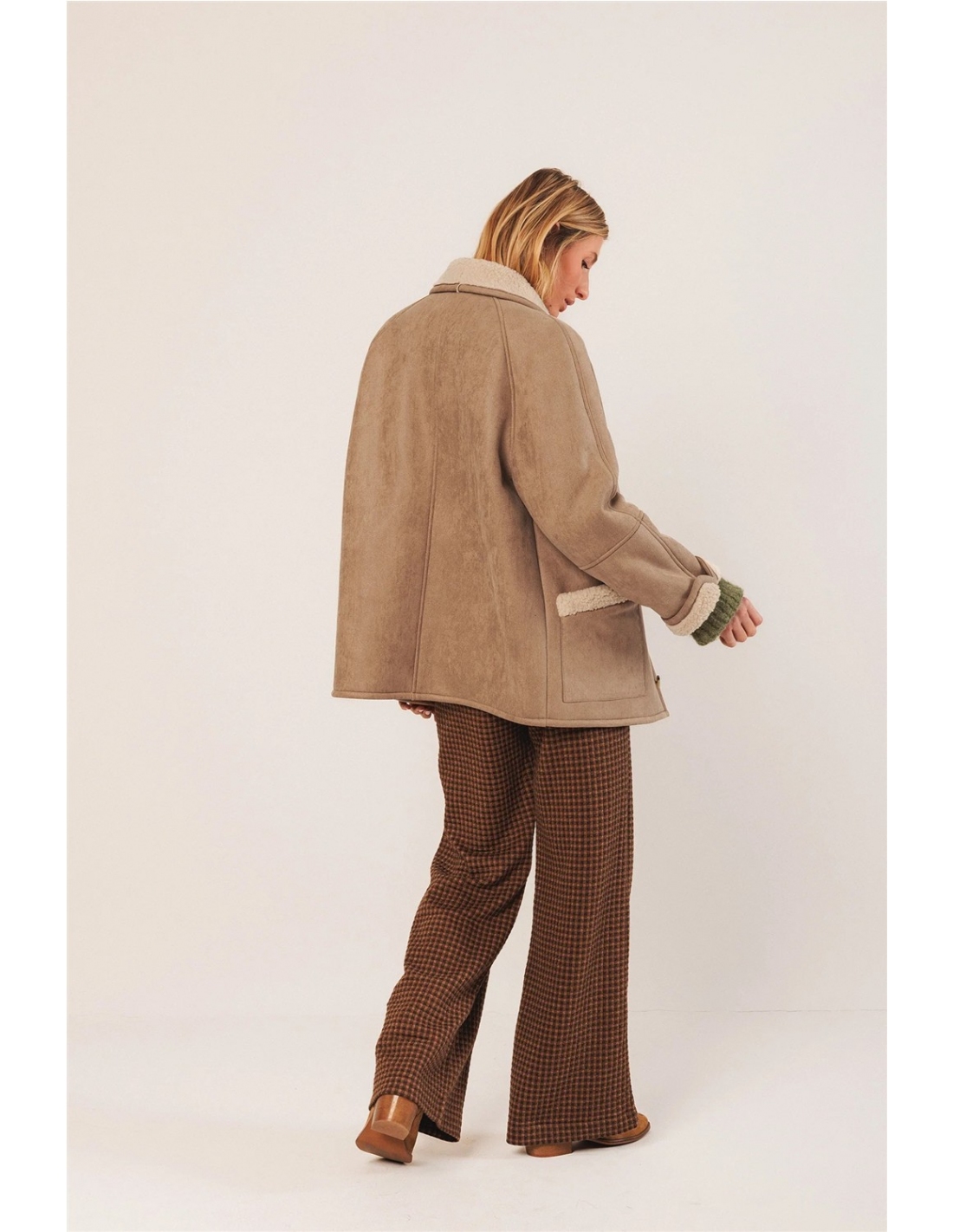 Esta temporada tenemos otra variante de la clásica pelliza de aviador. Esta tiene el cuello solapa y manga ranglan, bolsillos de parche vuelto y fit relajado.