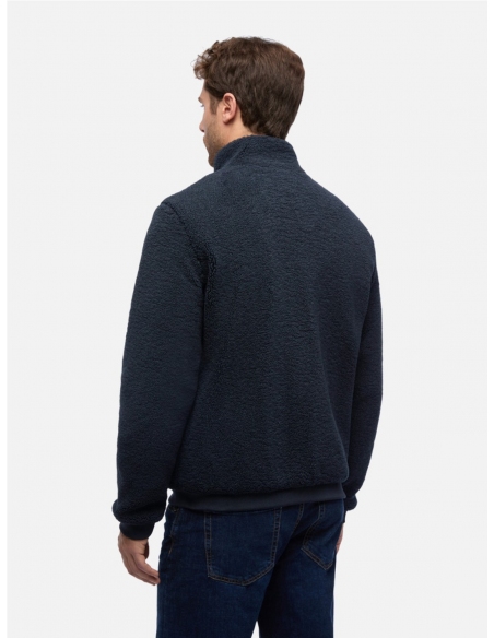 Chaqueta reversible para hombre de estilo moderno, diseñada para añadir un toque practico al armario urbano. Este modelo, de color azul medianoche, ha sido realizado con suave tejido efecto peluche con forro reciclado, con cremallera y un bolsillo en el pecho. Sweater garantiza la máxima transpiración y confort para completar los looks diarios con personalidad.