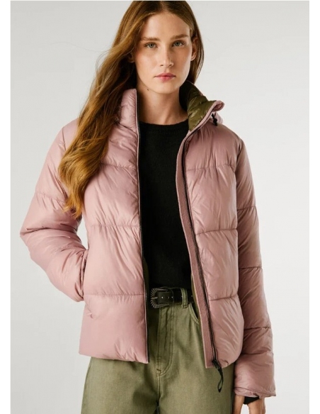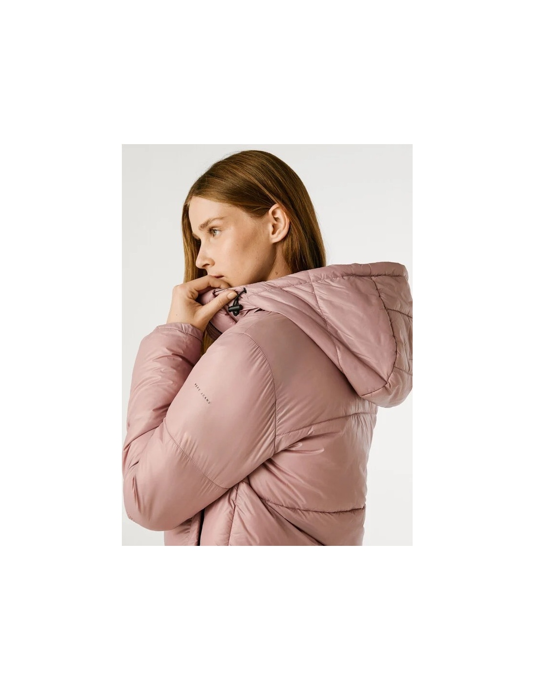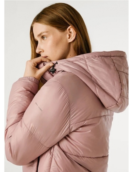 - Plumífero en tejido brillante e impermeable - Paneles acolchados con relleno de plumón sintético - Capucha desmontable y ajustable con cordones - Cierre frontal de cremallera - Bolsillos laterales ribeteados - Logo PEPEJEANS estampado en la manga izquierda - Forro interior en contraste de colores con logo estampado - Puños elásticos con orificio integrado para dedo pulgar - Fabricada 100% con materiales reciclados