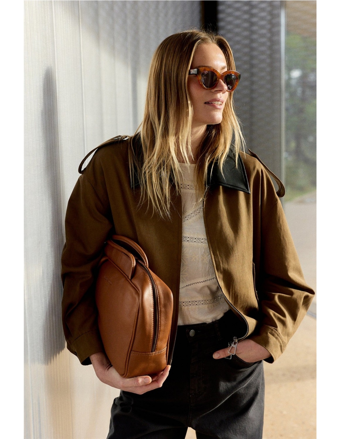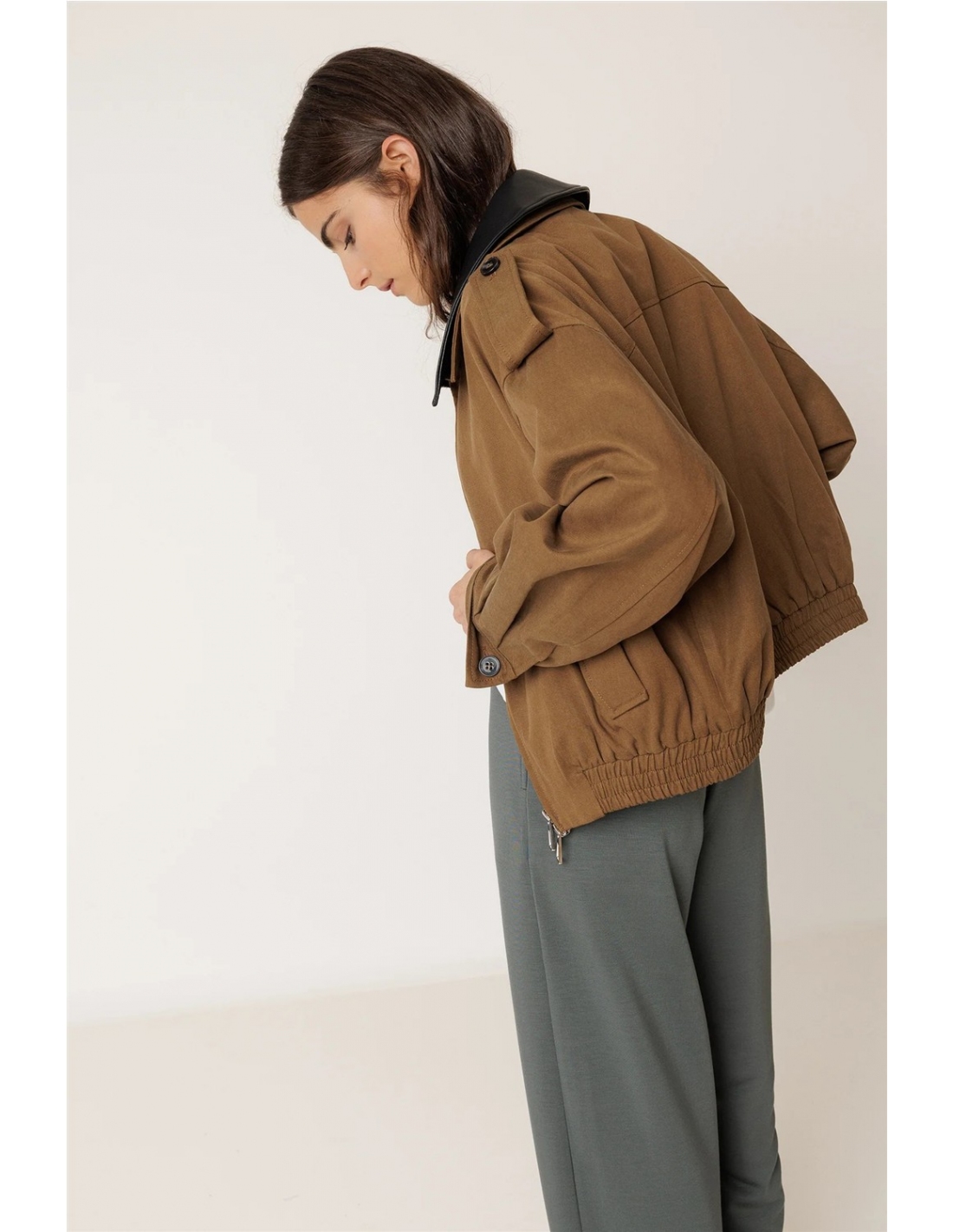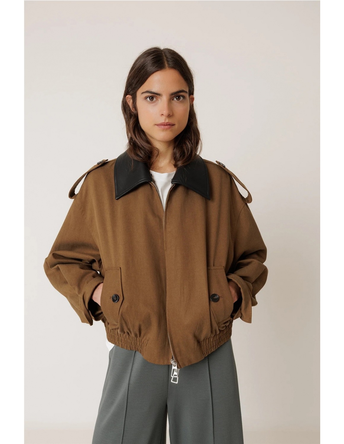 Esta cazadora de algodón y lyocell te solucionará el look en esos días frescos de verano. De hombro caído, manga larga y cuello desmontable. Tiene un volumen tipo bomber gracias a su ajuste en el bajo.