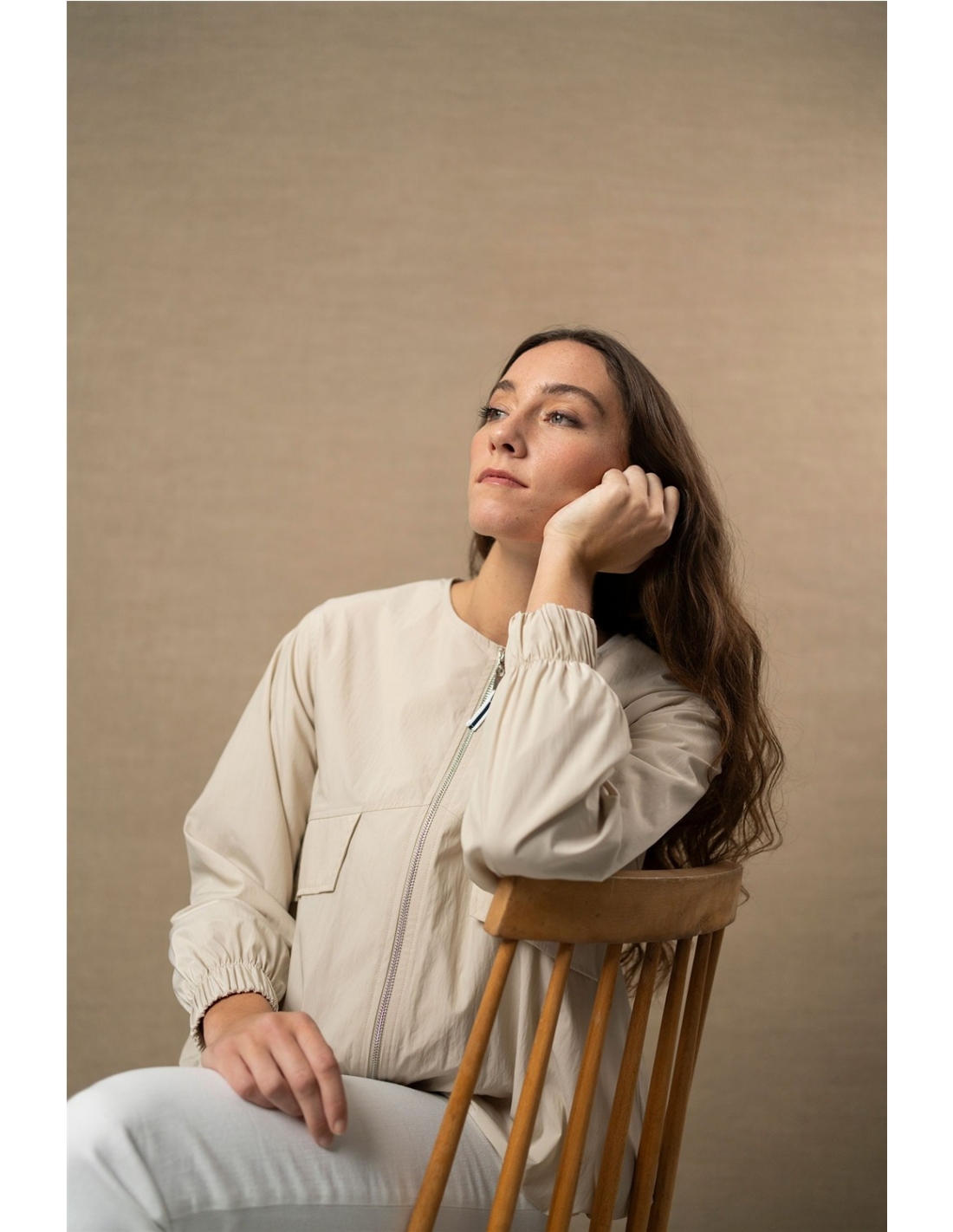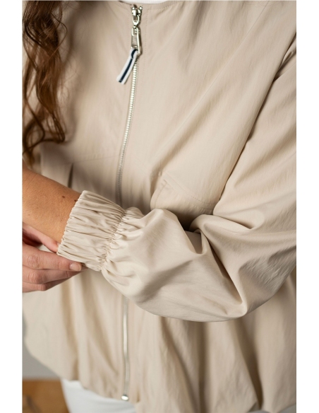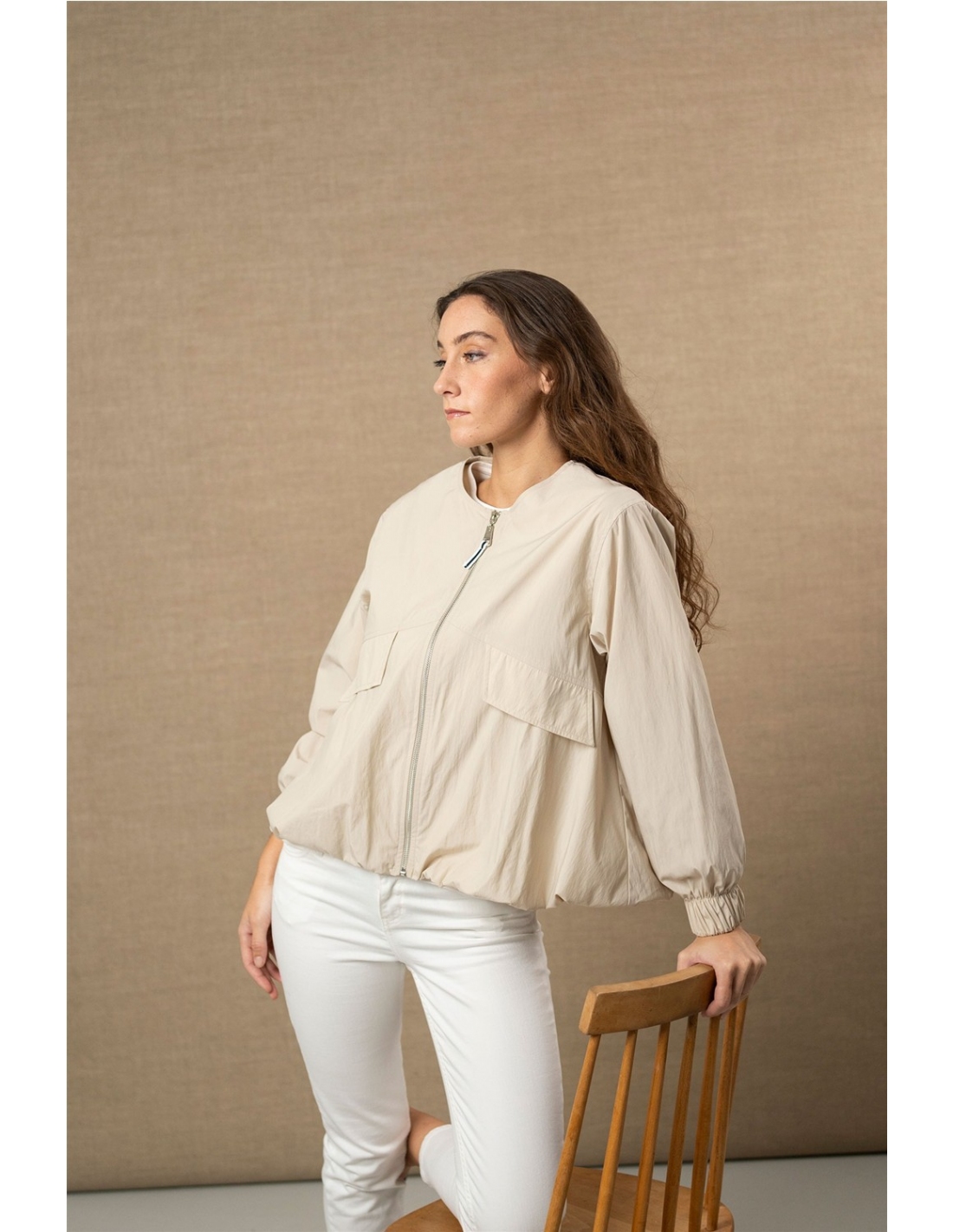Ligera, versátil y pensada para el día a día. Esta chaqueta en tono beige suave aporta un aire natural y relajado al look. Su silueta ligeramente holgada y el largo a la cadera la convierten en una prenda cómoda y fácil de combinar, perfecta para acompañar estilismos informales o dar un punto más casual a conjuntos más cuidados. El cierre frontal de cremallera y los bolsillos frontales con tapeta aportan funcionalidad al diseño