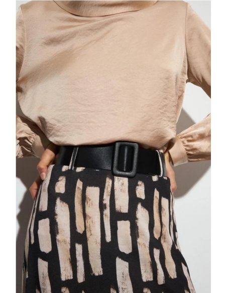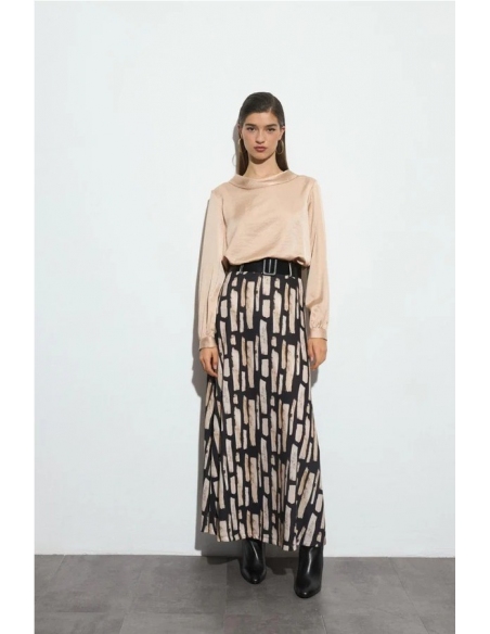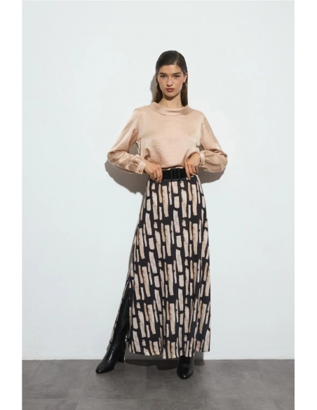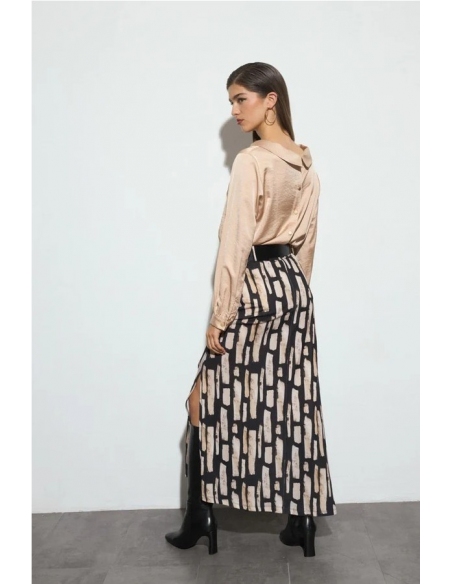 Falda recta estampada. Largo completo. Apertura lateral hasta la rodilla. Cintura ajustada con cinturón. Diseño recto. Bajo recto. Diseñado y fabricado en España.