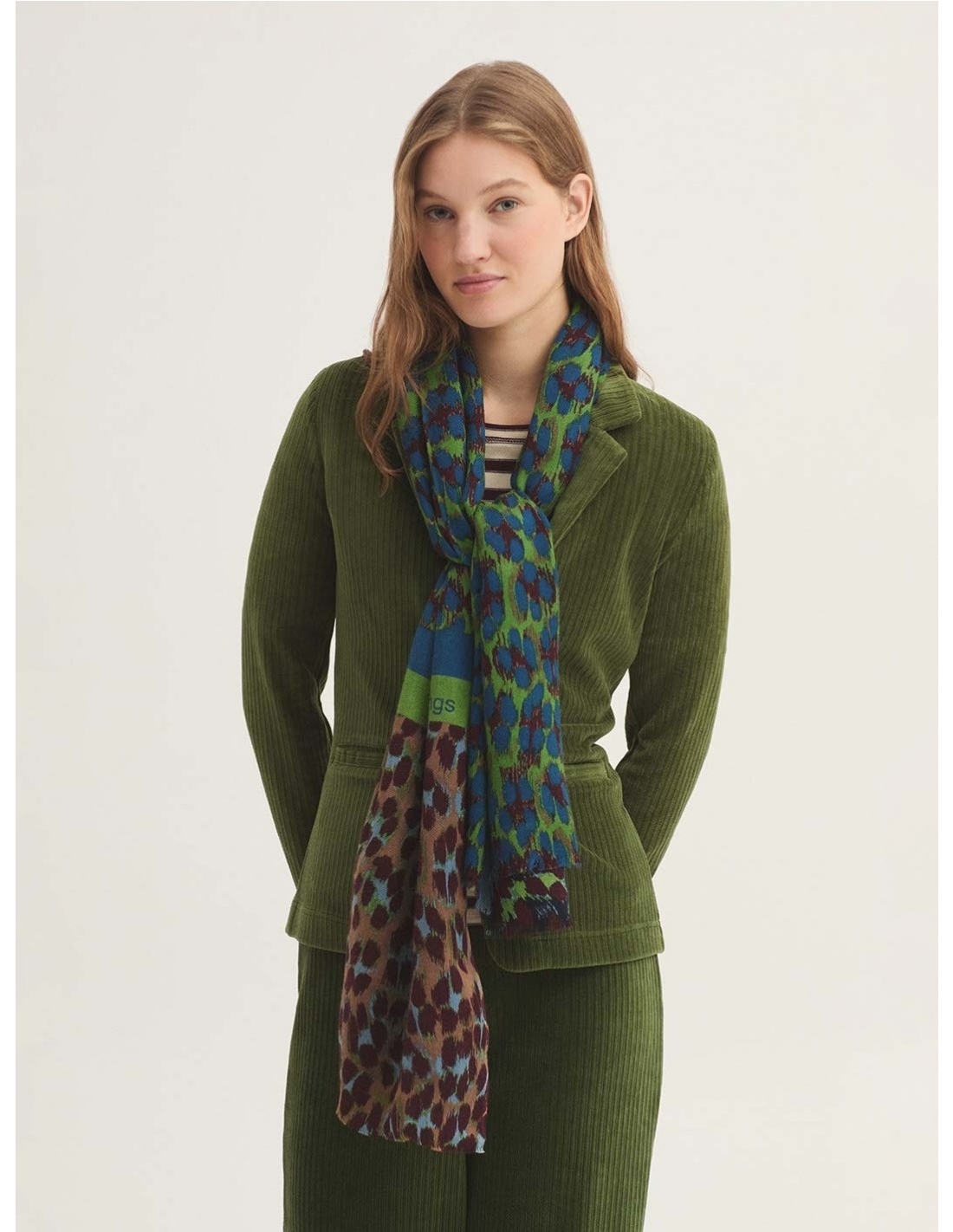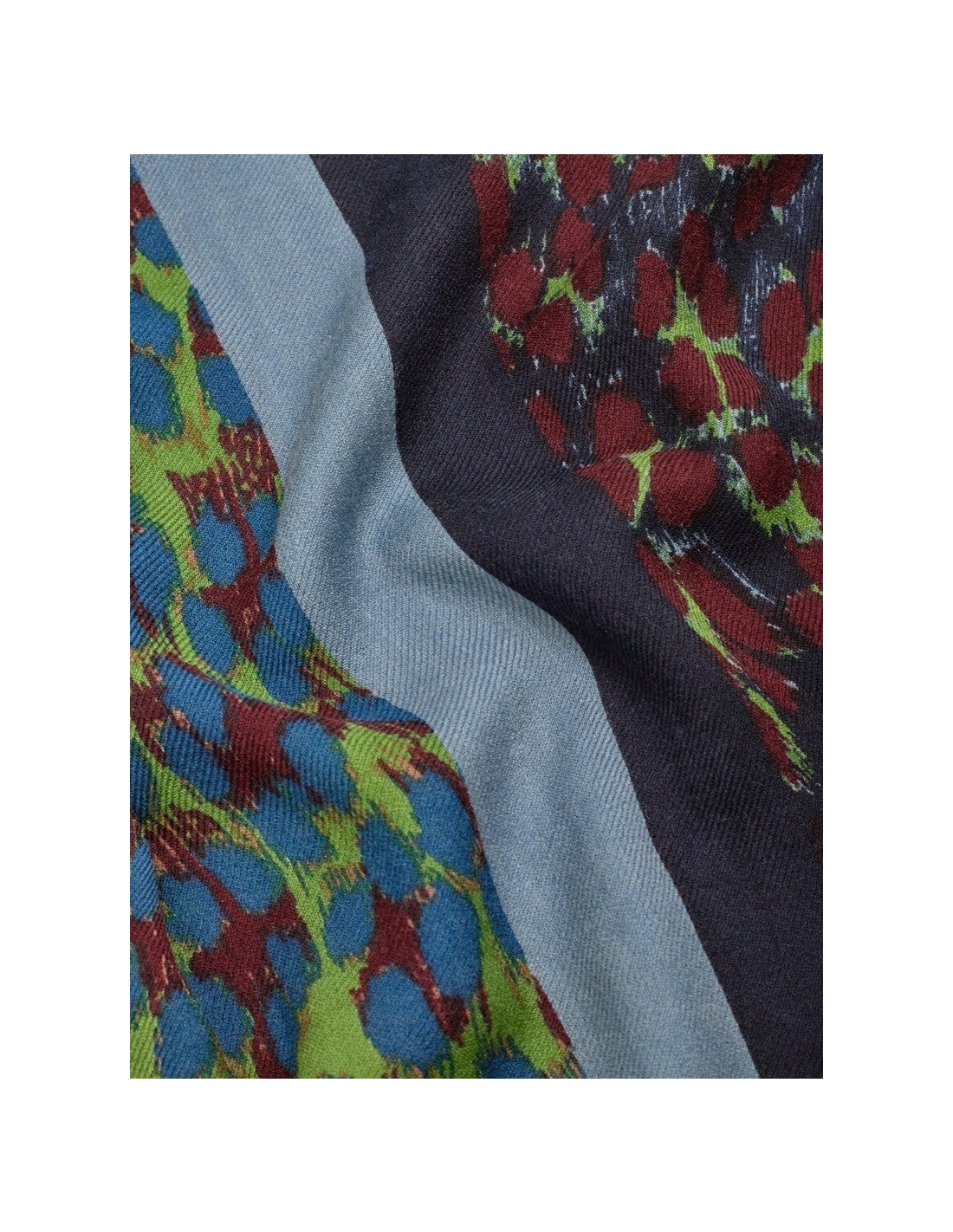 Pañuelo estampado Leopard Patch. 70 % viscosa - 30 % lana. Medidas: 70 x 180 cm.