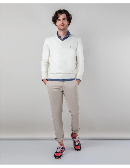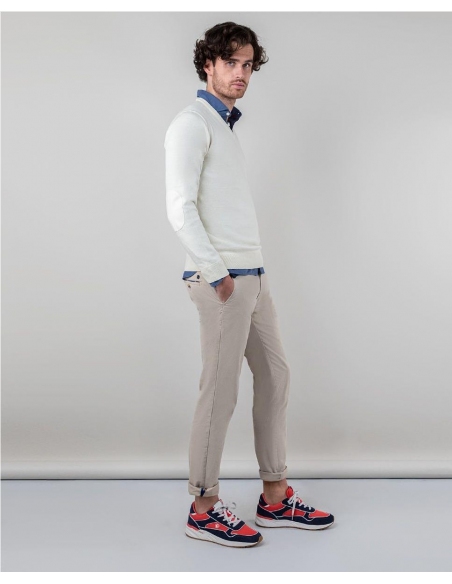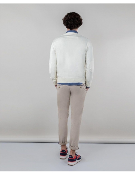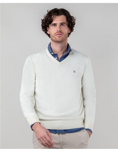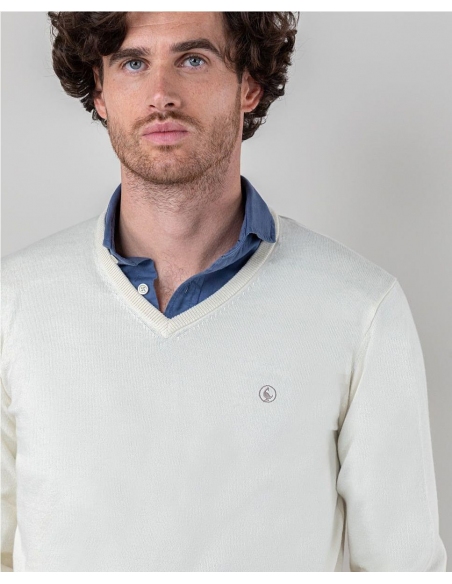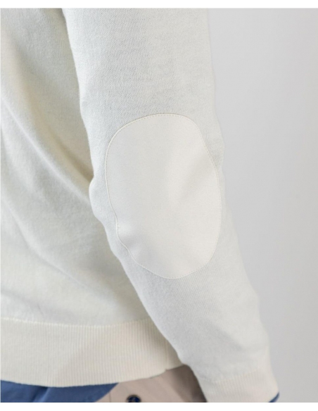 Jersey confeccionado en tejido 100% algodón con hilatura melange. Corte Regular Fit, cuello de pico, coderas de antelina y manga larga acabada en rib. Logo bordado en el pecho. Detalles interiores a contraste de cinta corbatera.