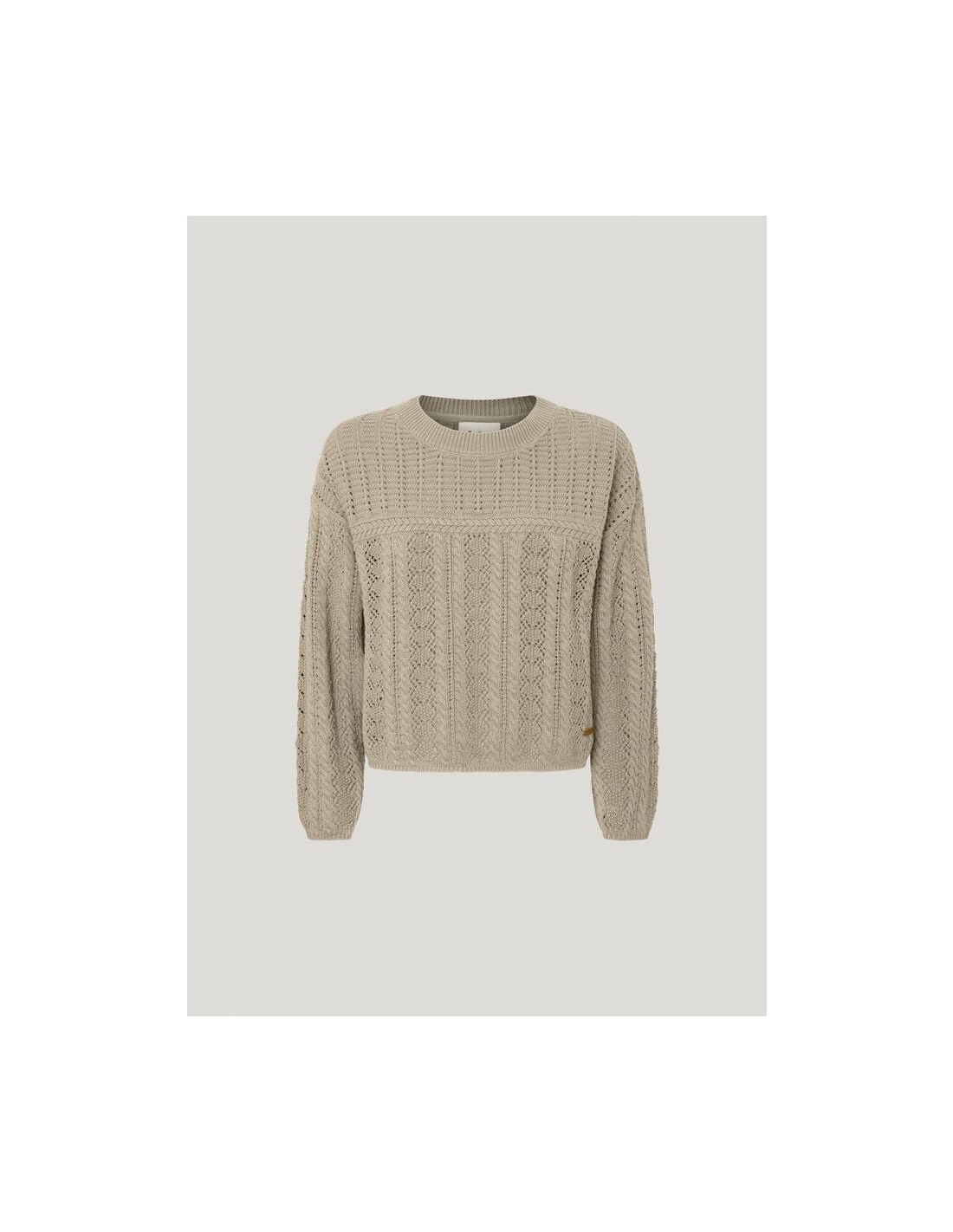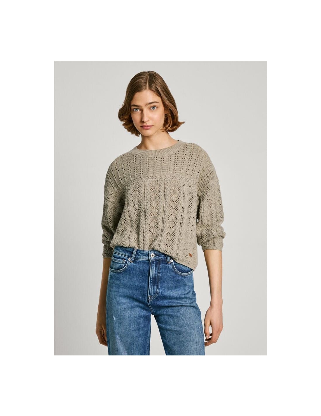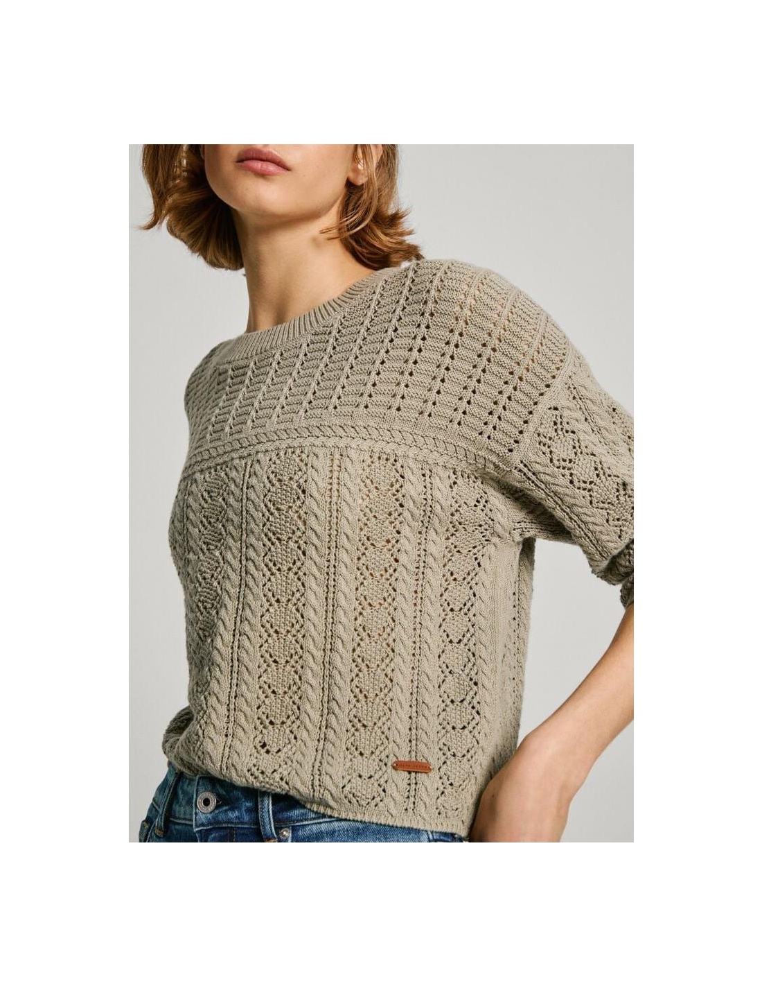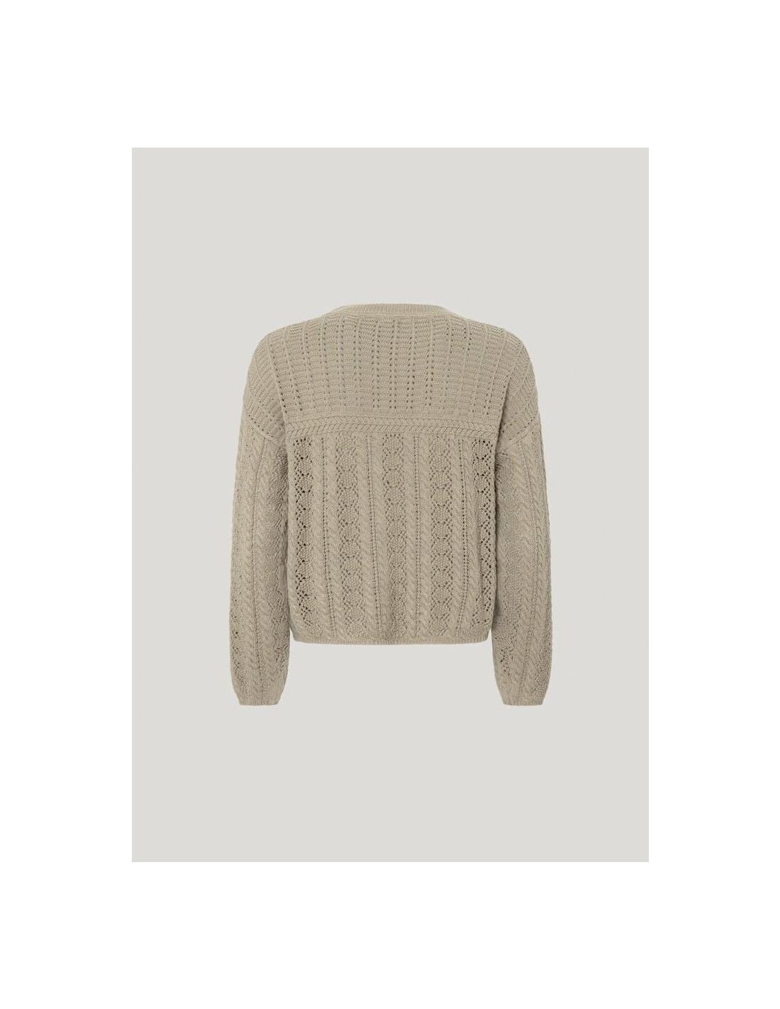 - Jersey en tejido de algodón texturizado - Cuello redondo - Manga larga - Hombros caídos - Detalles calados all over - Punto waffle en canesús - Etiqueta con logo PEPEJEANS en bajo - Detalle canalé en cuello, puños y bajoal para sentirte bien y lucir genial!