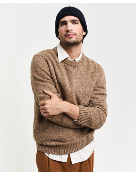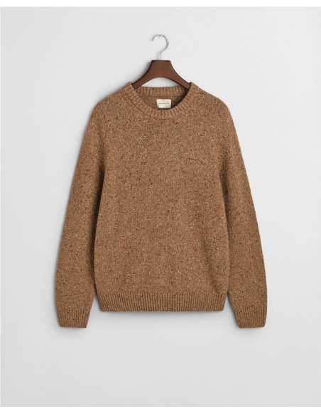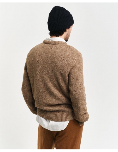 Este jersey, confeccionado en una mezcla de lana italiana con efecto nepps, es una prenda básica que usarás año tras año. Tiene un corte regular y presenta detalles totalmente confeccionados y terminaciones de canalé en el dobladillo y los puños. Este jersey se completa con un sutil logotipo de GANT bordado en el pecho.