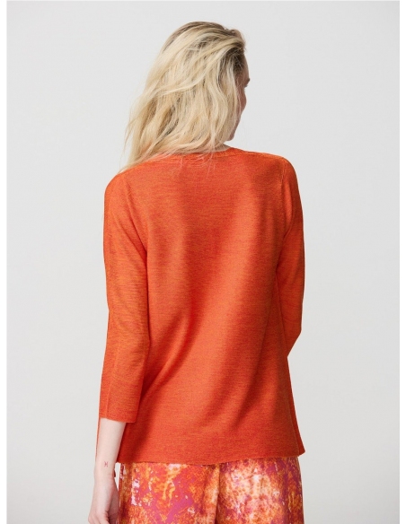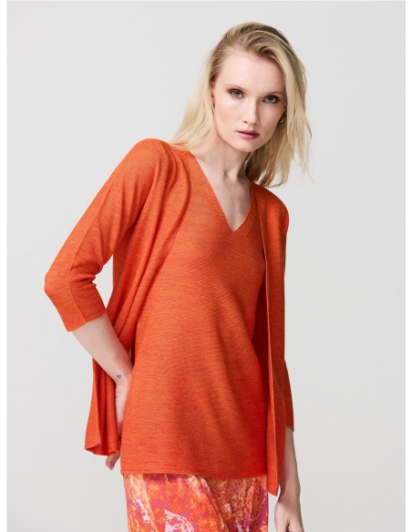 Este cárdigan de manga 3/4 está tejido con hilo sostenible y su estructura sencilla hace que sea fácil de combinar con cualquier look. Nuestro básico de toda la vida, la mejor opción para este verano. Este hilo está compuesto por una mezcla de viscosa y poliéster de diferentes colores que le dan un efecto bicolor al tejido.
