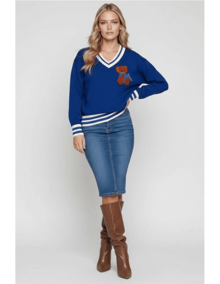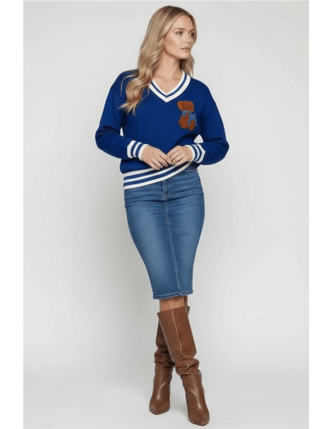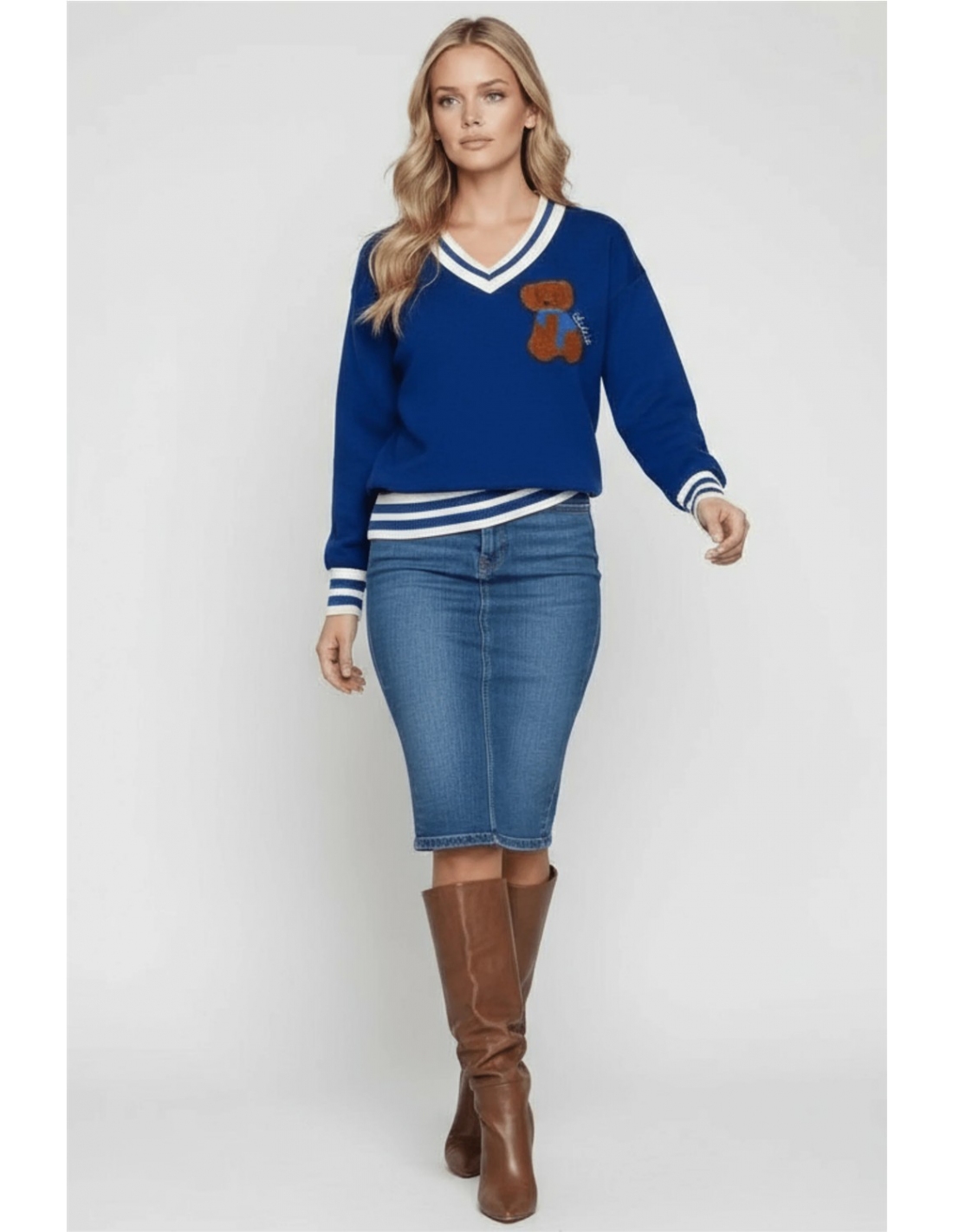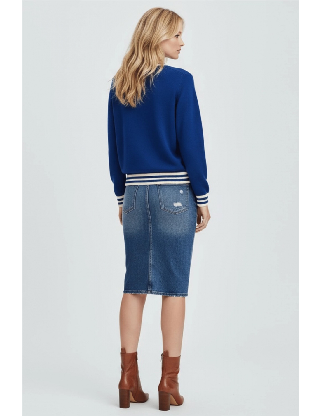 Esta camiseta azul de punto rompe todas las reglas y crea su propio código de estilo. Imagina esa sensación de libertad que te da tu ropa deportiva favorita, pero con un toque tan encantador que puedes llevarla a cualquier parte
