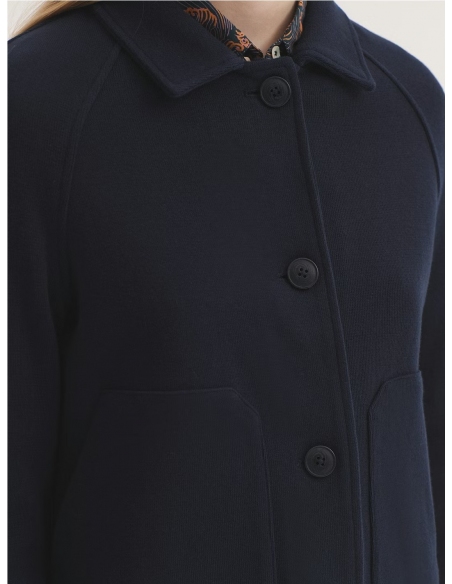 Abrigo abotonado. Cuello camisero, bolsillos delanteros y abertura central trasera. Manga larga caída. Si dudas entre dos tallas, elige la más pequeña.