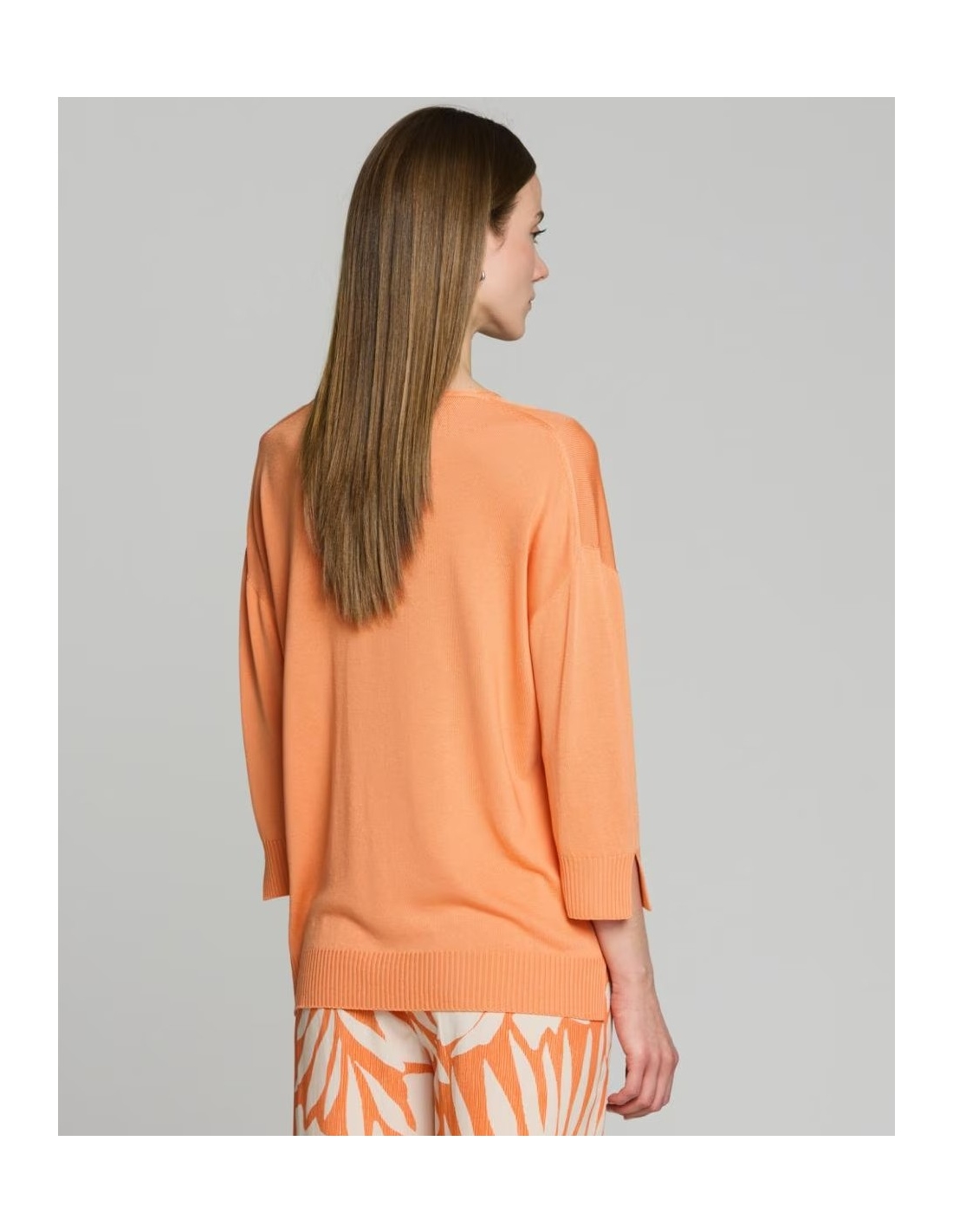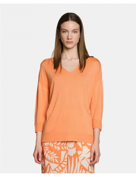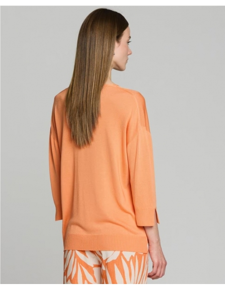 El jersey Violet, de punto fino que estiliza el cuello y aporta un toque femenino. Mangas 3/4, perfectas para entretiempo y looks versátiles. Su diseño sencillo lo convierte en un básico elegante para el día a día.