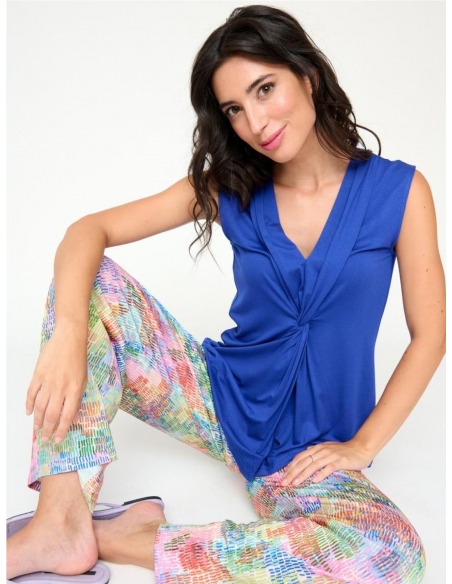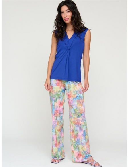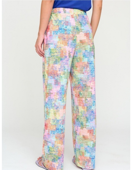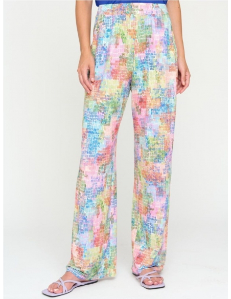 Pantalón largo estampado. Diseño amplio y recto. Tejido de punto ligero, suave y fluido, ligeramente elástico. Bolsillos laterales ocultos. Cintura elástica. Bajo recto. Diseñado y fabricado en España.
