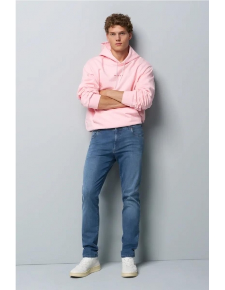 Patrón „Slim Fit“ Ancho de pie 37 cm / 14½ pulgadas cm talla 34 pulgadas Cintura elástica para un ajuste perfecto en la cintura Únicamente tejidos denim elásticos desde elástico confort hasta súper-elástico Un total de 7 trabillas gracias a la trabilla extra con logotido M|5 Bolsillo para monedas adcional en el bolsillo delantero derecho (interior)
