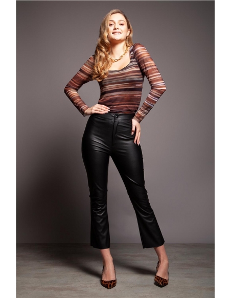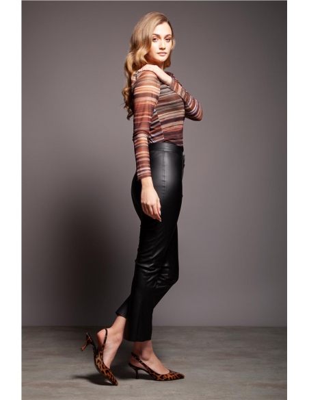 ¿Buscas ese pantalón versátil que combine estilo, comodidad y un toque de rebeldía? Descubre nuestro pantalón negro en polipiel de corte pitillo, una pieza que elevará tus looks del día a la noche con un aire sofisticado y edgy.