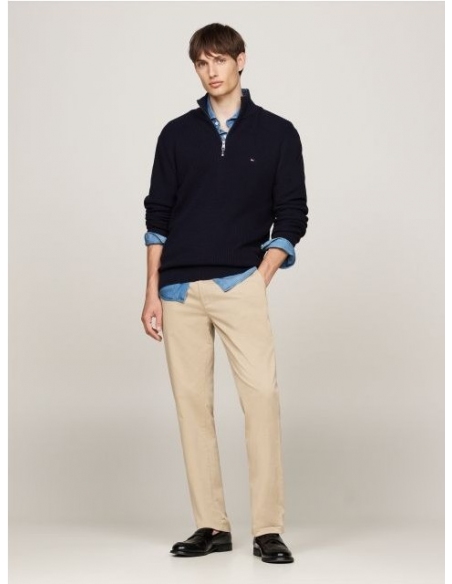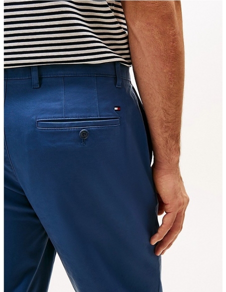 Algodón elástico Cierre de cremallera y botón. Dos bolsillos laterales en ángulo Dos bolsillos de ribete con botones en la parte trasera La marca Tommy Hilfiger Bordado de la bandera de Tommy Hilfiger en la espalda Composición 98% algodón, 2% elastano