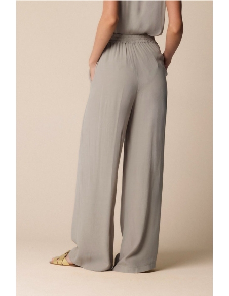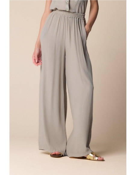 Elegancia y practicidad para el pantalón ancho de la cápsula Pure Verve, caracterizado por la línea ancha y la cintura elástica suave. Composición 100% VISCOSA
