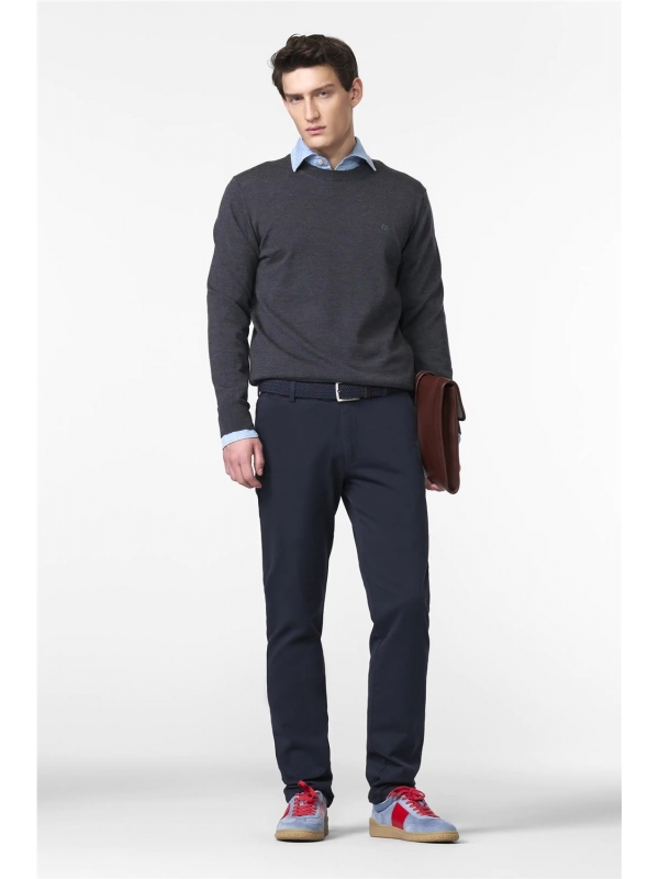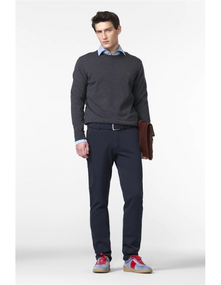 Nuestro modelo Oslo cuenta con dos zonas elásticas en la cintura que garantizan una libertad de movimiento total. Su suave tejido de sarga de alta calidad ofrece una sensación de comodidad excepcional y una agradable calidez. Su corte moderno, los detalles exclusivos de pana y el forro interior multicolor hacen que este pantalón chino eleve cualquier look. Este modelo combina el máximo confort, acabados impecables y un gran estilo. Además, ha sido fabricado de forma sostenible y justa en Europa.