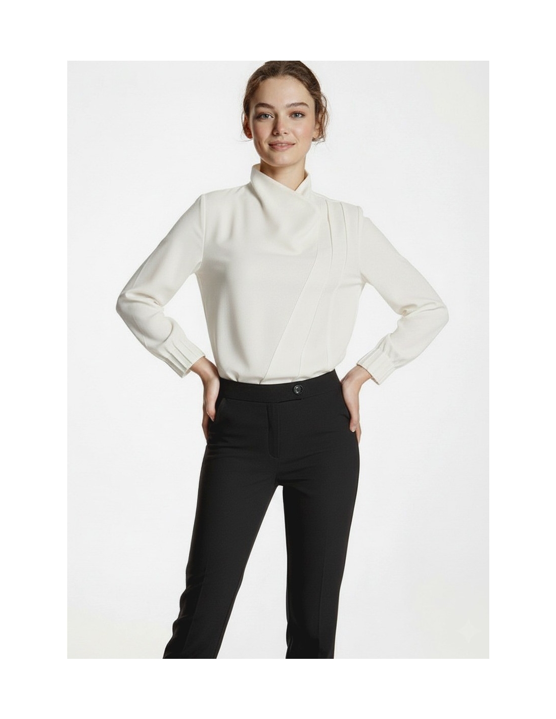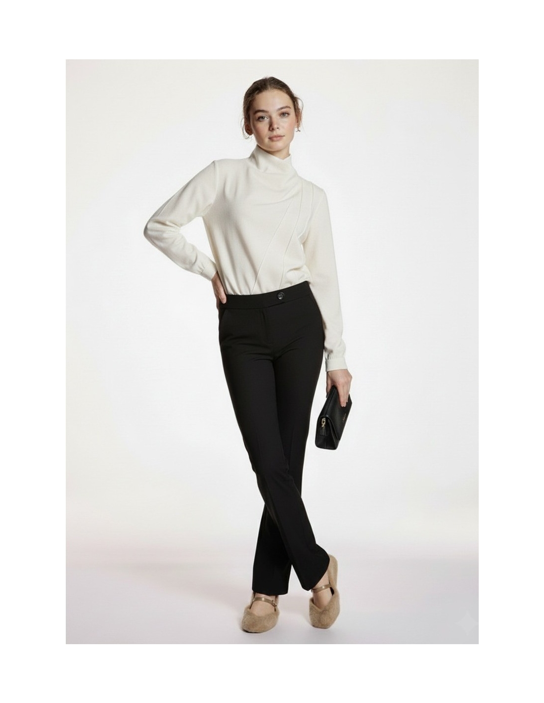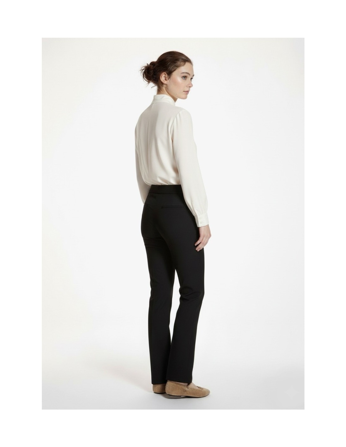 Pantalón de tiro medio ALBA CONDE con detalle de bajo ligeramente acampanado. Este modelo presenta bolsillos laterales delanteros y de vivo simulados posteriores. Cierre central con cremallera metálica oculta por tapeta, botón y botón de refuerzo interior.