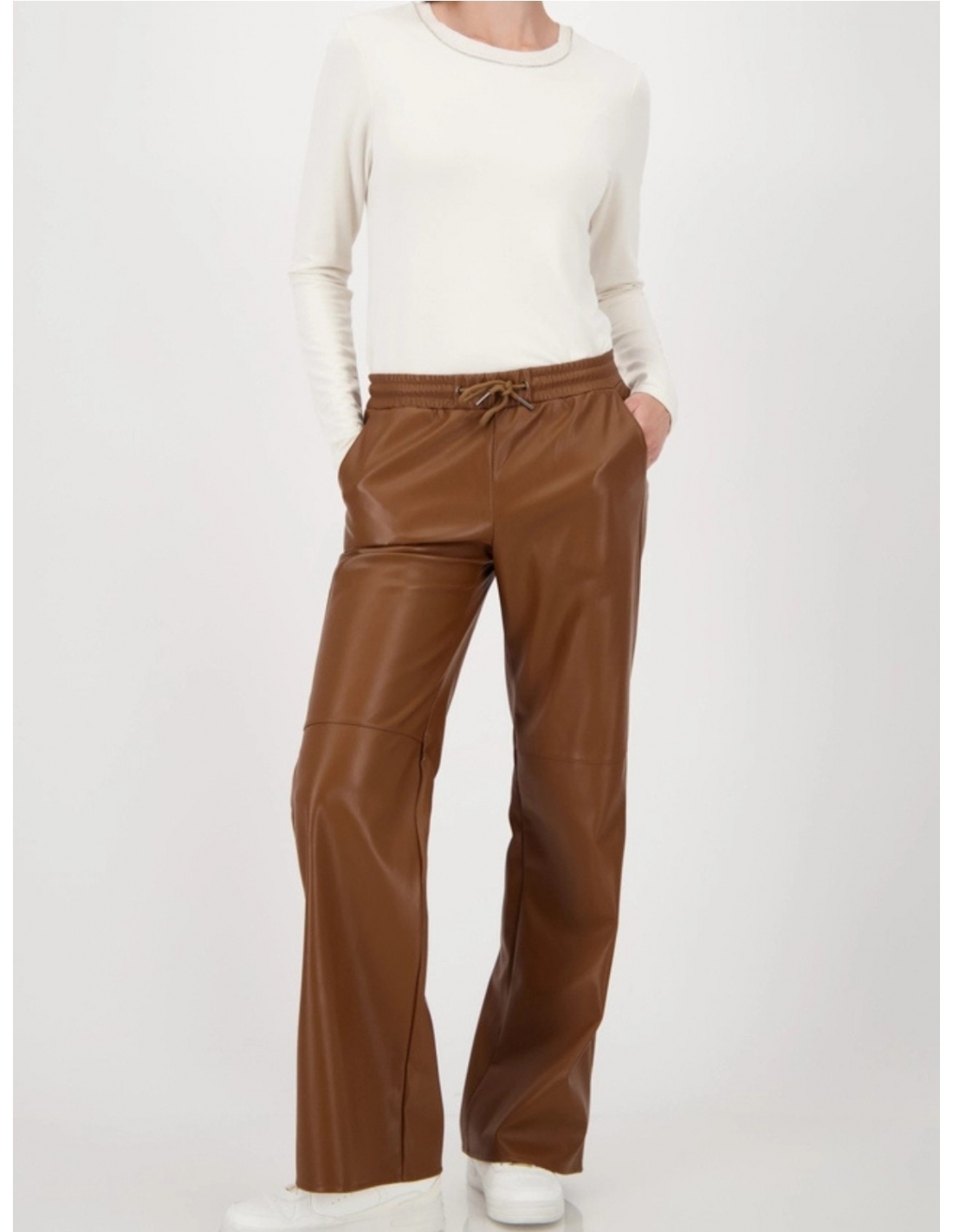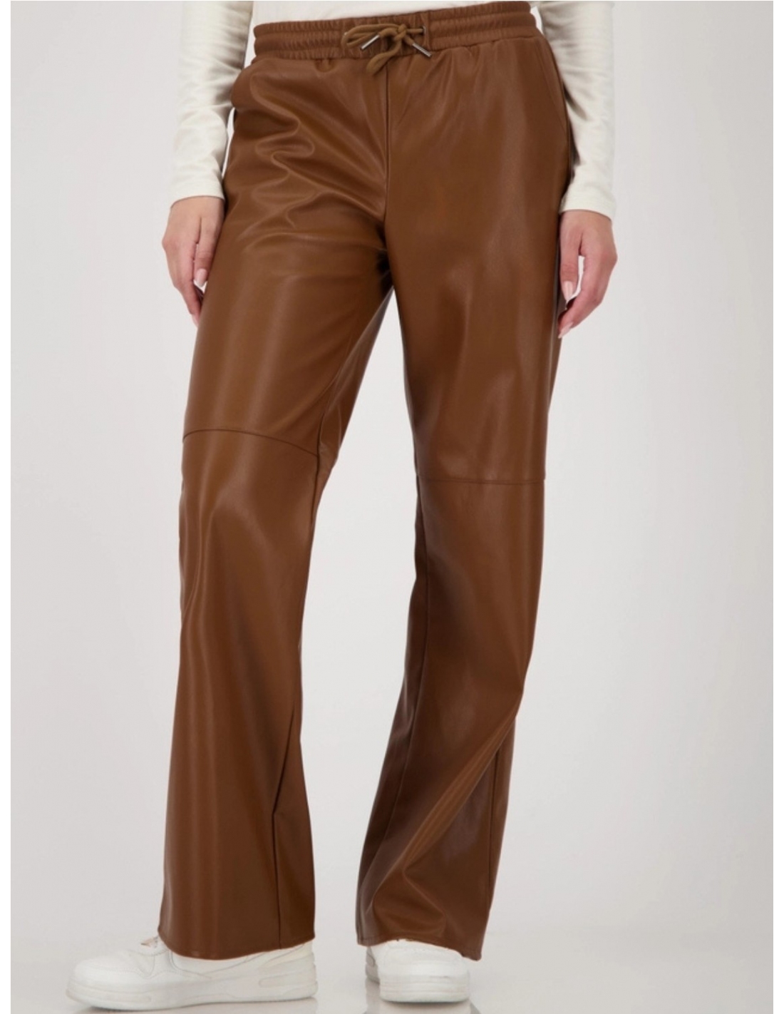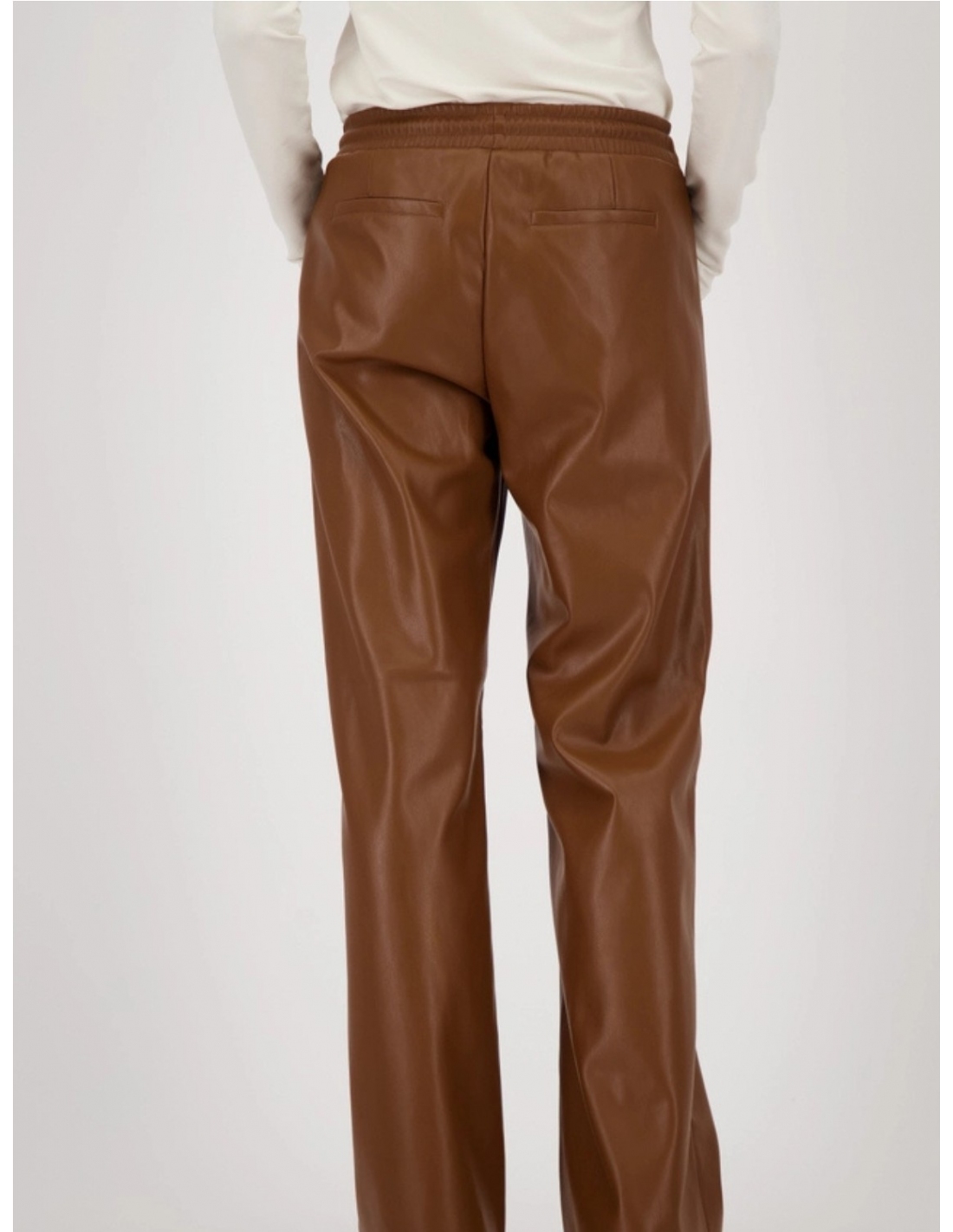 Pantalones modernos de efecto cuero con corte recto. La cinturilla elástica con cordón y los prácticos bolsillos laterales le dan un aspecto moderno y cómodo.
