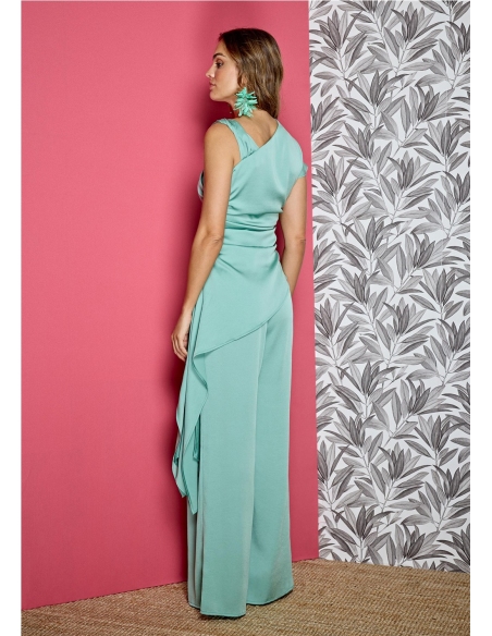Pantalón de vestir de pierna ancha con caída fluida, diseñado para estilizar la figura y proporcionar mayor libertad de movimiento a cada paso. Su tejido ligero y cintura alta con elástico en la espalda lo convierten en la prenda perfecta para invitadas que buscan comodidad sin renunciar a la elegancia. Ideal para combinar con blusas o chaquetas a juego y crear un look sofisticado y contemporáneo para eventos especiales. Cierre lateral con cremallera invisible y botón interior.