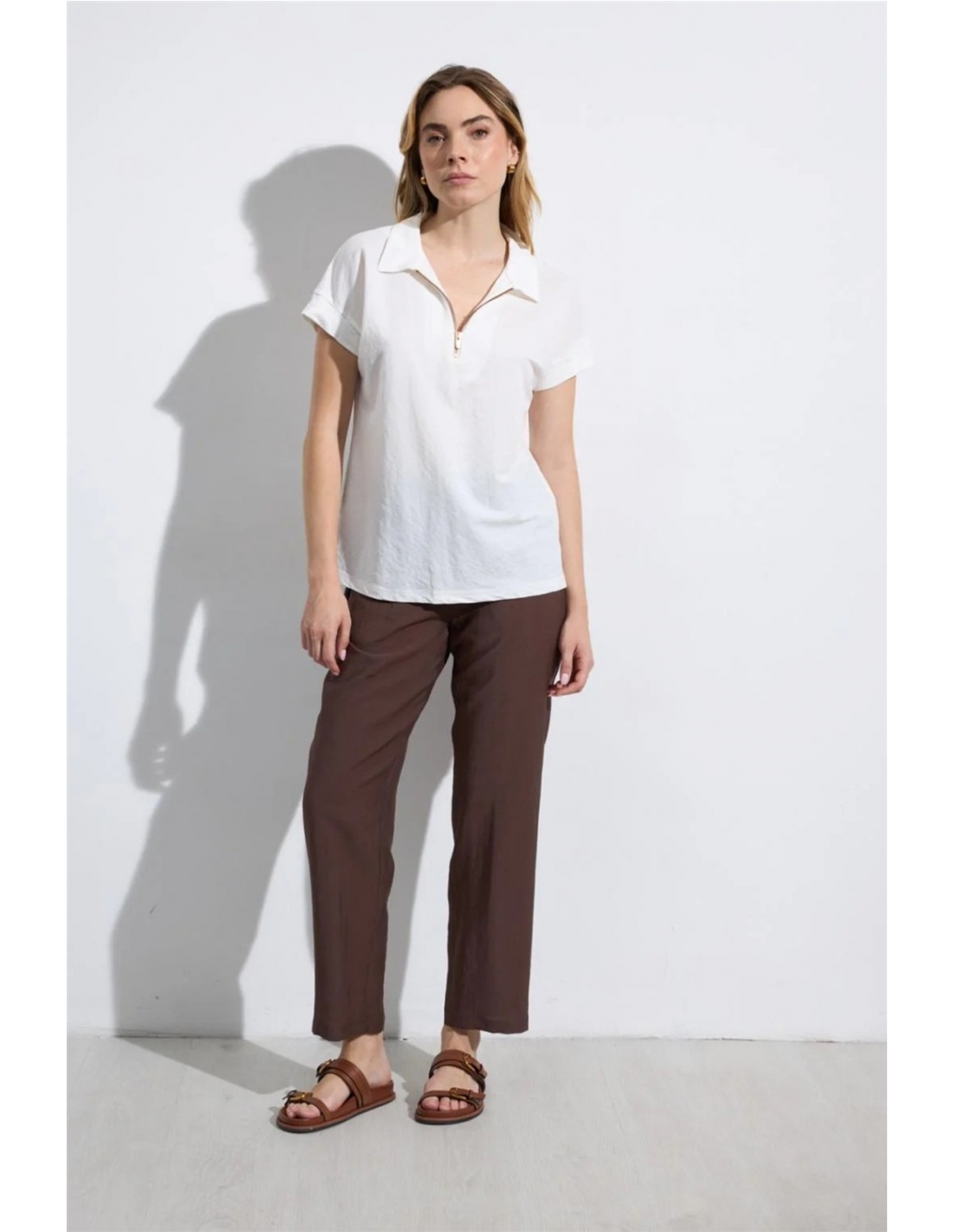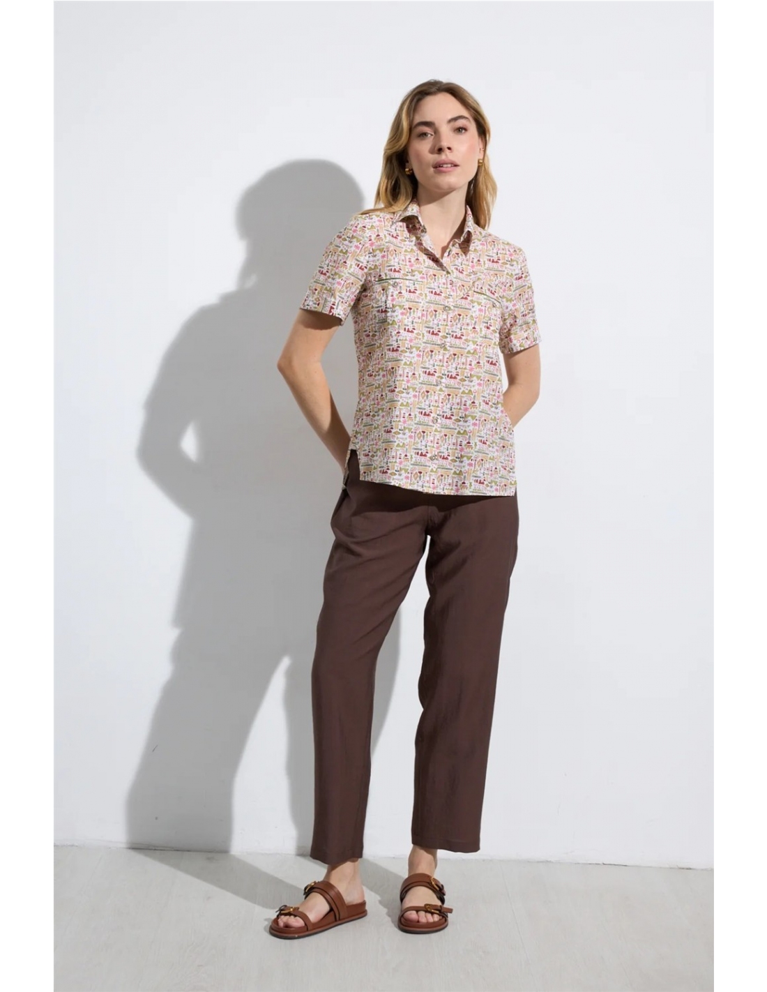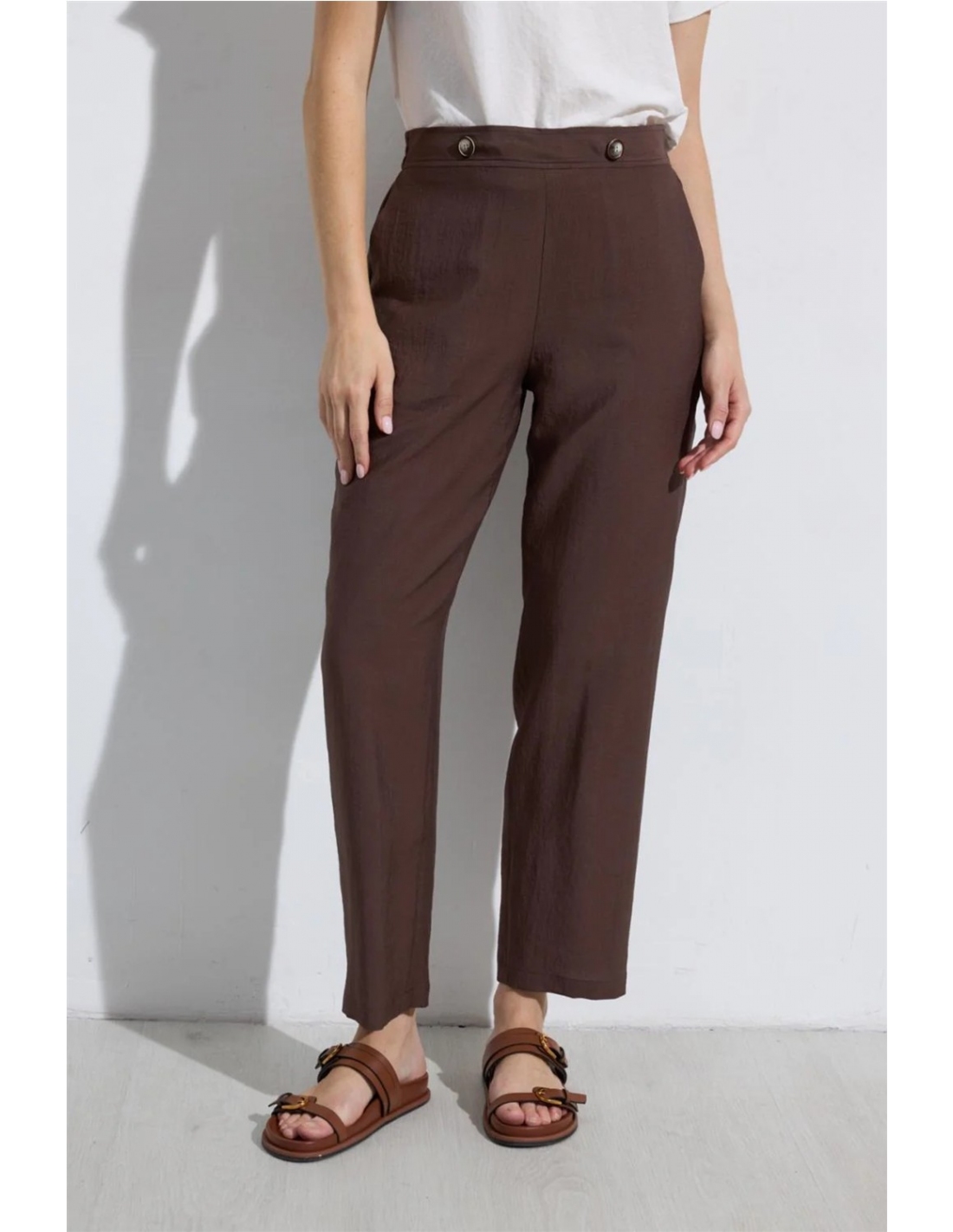 Pantalón recto. Cintura de talle medio. Detalle de botones decorativos frontales. Bolsillos laterales. Bajo recto. Diseñado y fabricado en España.