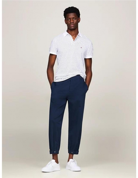 • Piqué de puro algodón • Microestampado integral • Cuello de polo • Tapeta de dos botones • Cinta distintiva en el interior del cuello • Detalles distintivos de Tommy Hilfiger • Logo de Tommy Hilfiger bordado en el pecho
