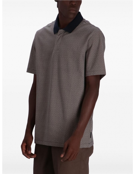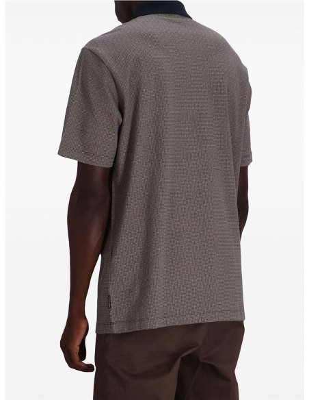 Polo regular fit confeccionado en algodón orgánico elástico con manga corta y microestampado. Esta prenda forma parte de la selección de ASV porque el tejido está confeccionado con material sostenible o reciclado certificado: un modelo que combina el estilo A|X con el compromiso de la marca por prestar cada vez más atención.