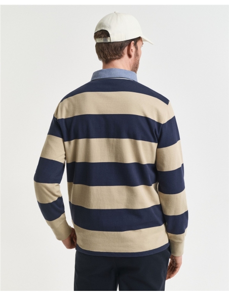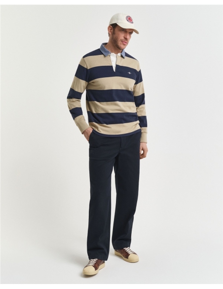 Con un pequeño escudo de GANT bordado en el pecho, esta camiseta de rugby a rayas está confeccionada en 100 % algodón y tiene un corte regular. Atemporal, clásica y versátil, su diseño se completa con un cuello de chambray y una tapeta clásica de tres botones.